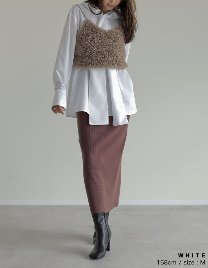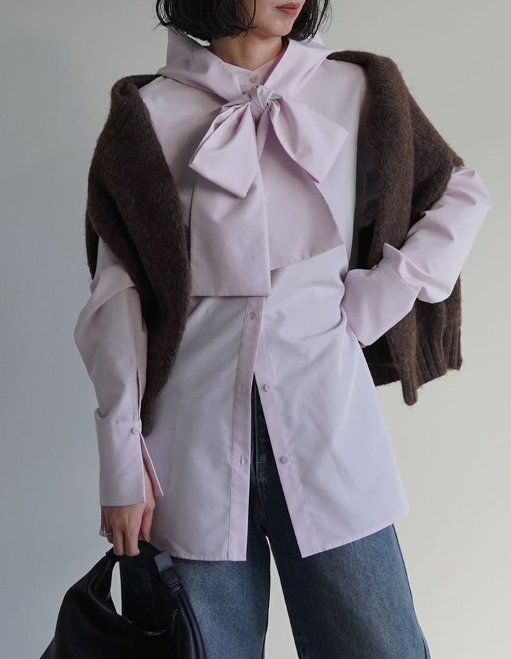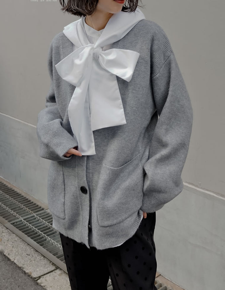 スカーフ部分はラフに垂らしたり、リボン結びにしたりと、アレンジ自在。その日の気分やスタイルに合わせて変化を楽しめます。胸元がVに開いたカーディガンやジャンパースカート、ざっくりニットとのレイヤードもおすすめです。