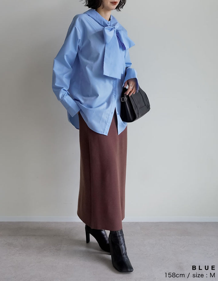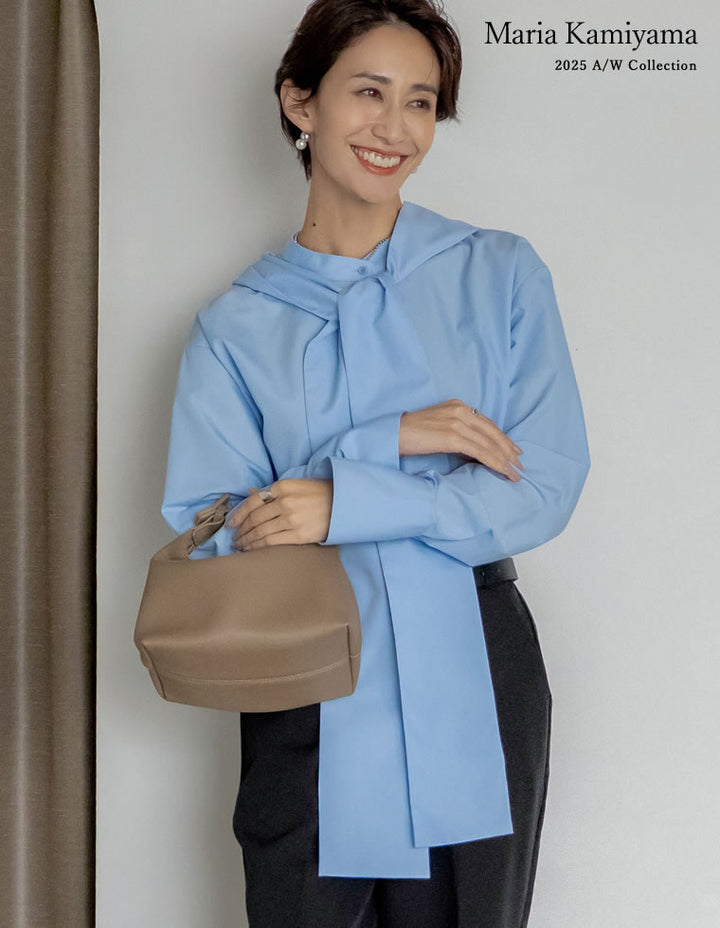 スカーフ部分はラフに垂らしたり、リボン結びにしたりと、アレンジ自在。その日の気分やスタイルに合わせて変化を楽しめます。胸元がVに開いたカーディガンやジャンパースカート、ざっくりニットとのレイヤードもおすすめです。