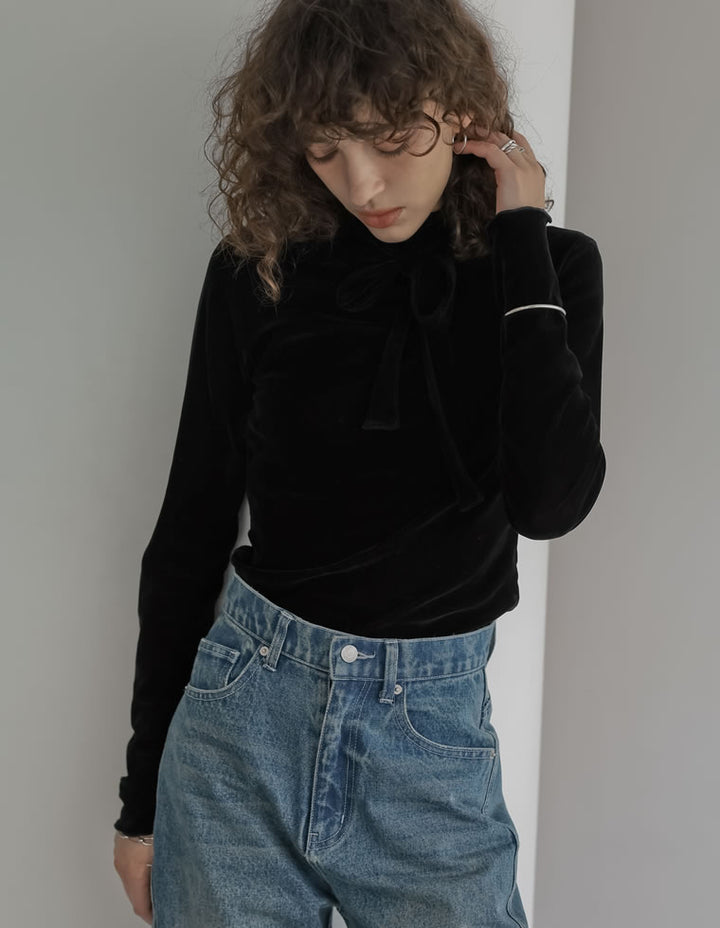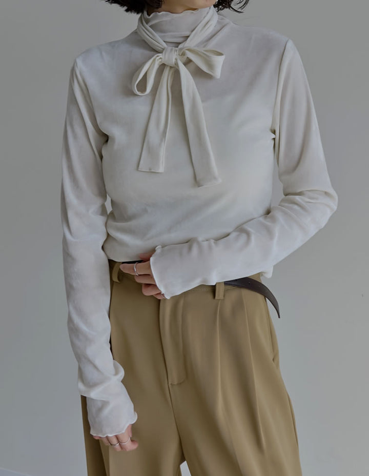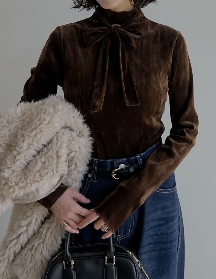 [2025AW COLLECTION][2点セット]シアーフロッキーベロアスカーフ付きハイネックトップス[mb]