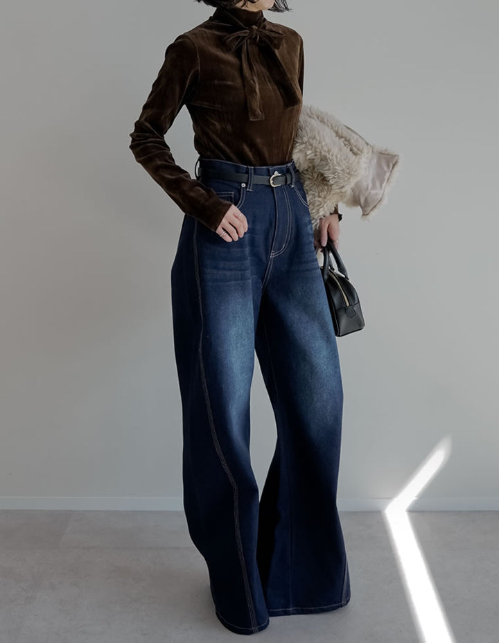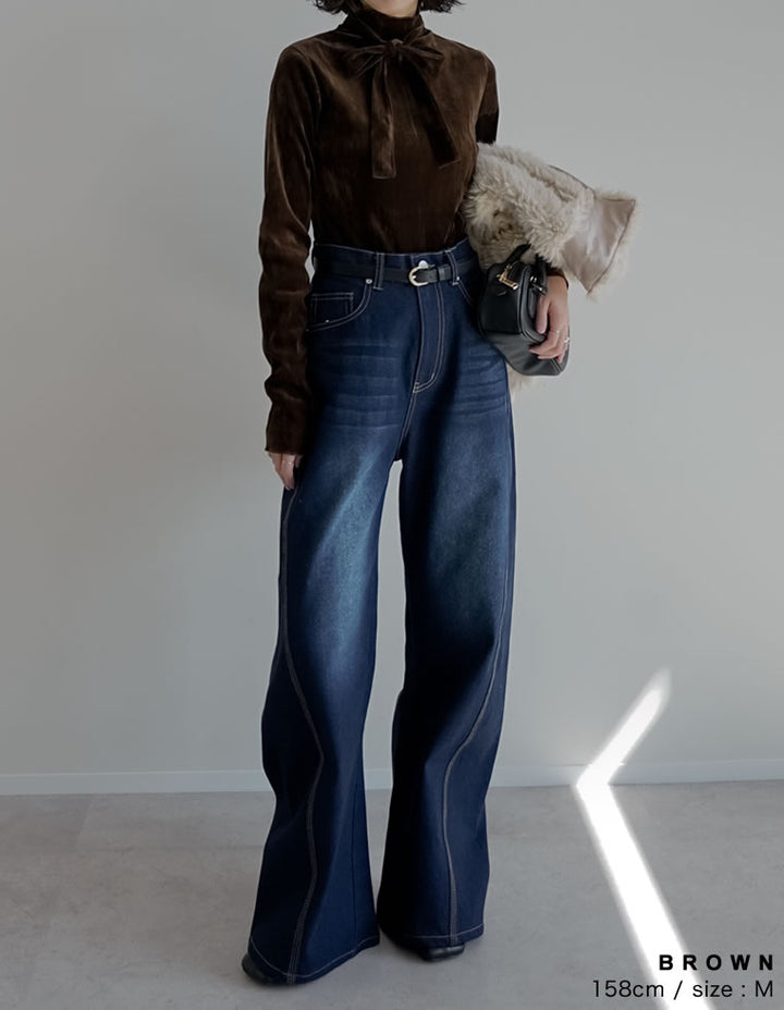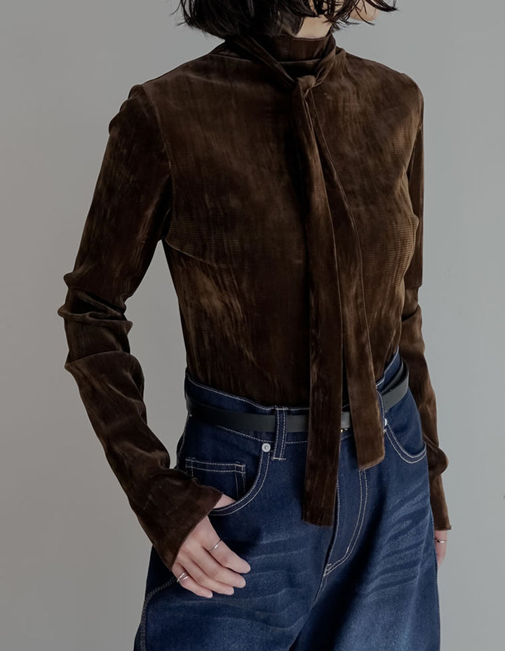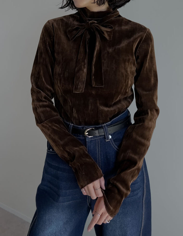 シアーフロッキーベロアバックベルト長袖トップス(商品番号:139892)