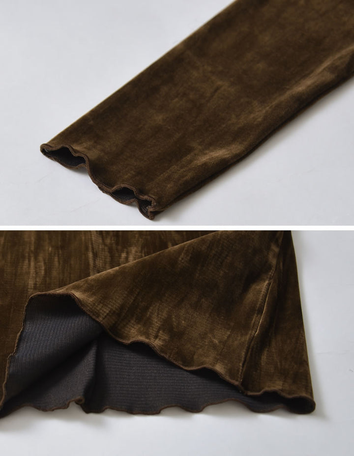シアーフロッキーベロア袖シャーリング長袖トップス(商品番号:139913)