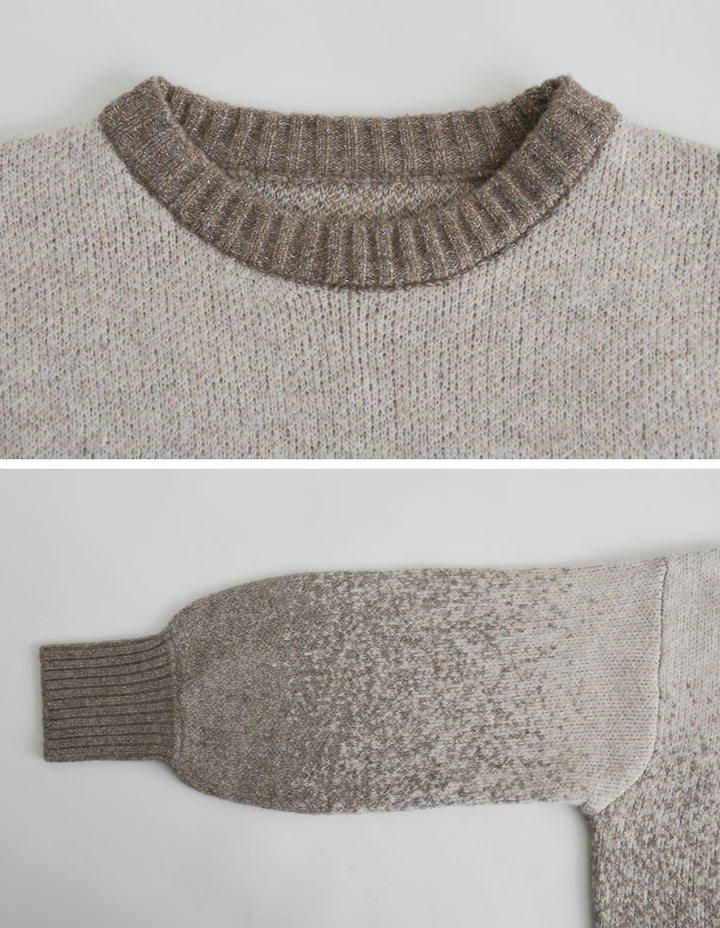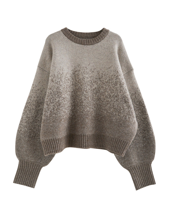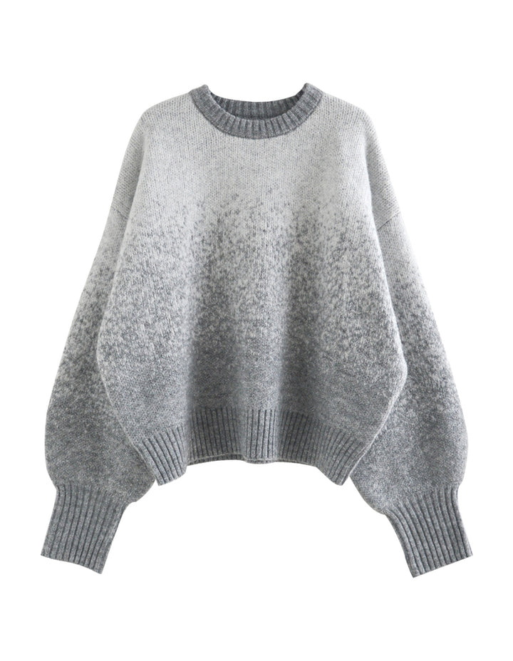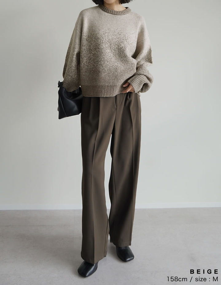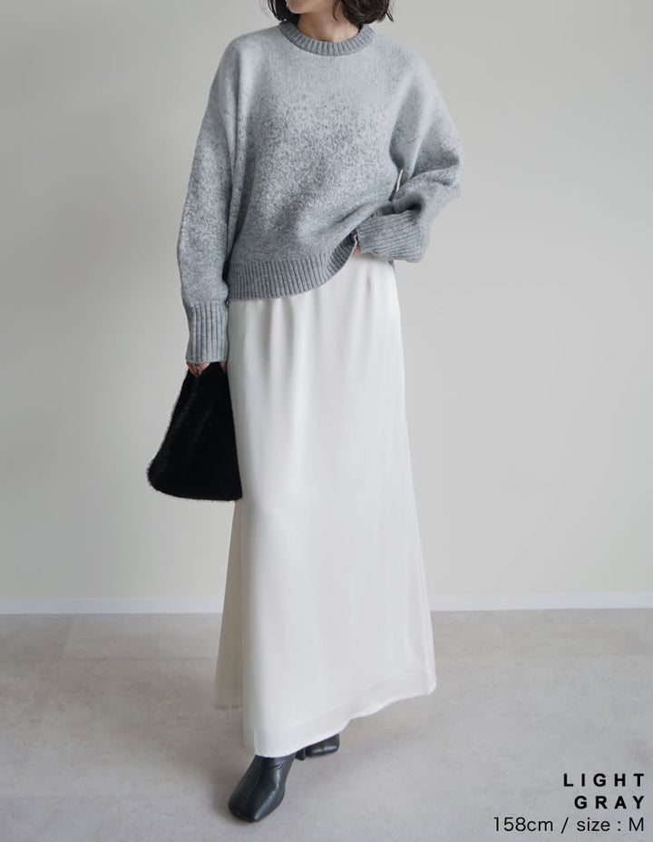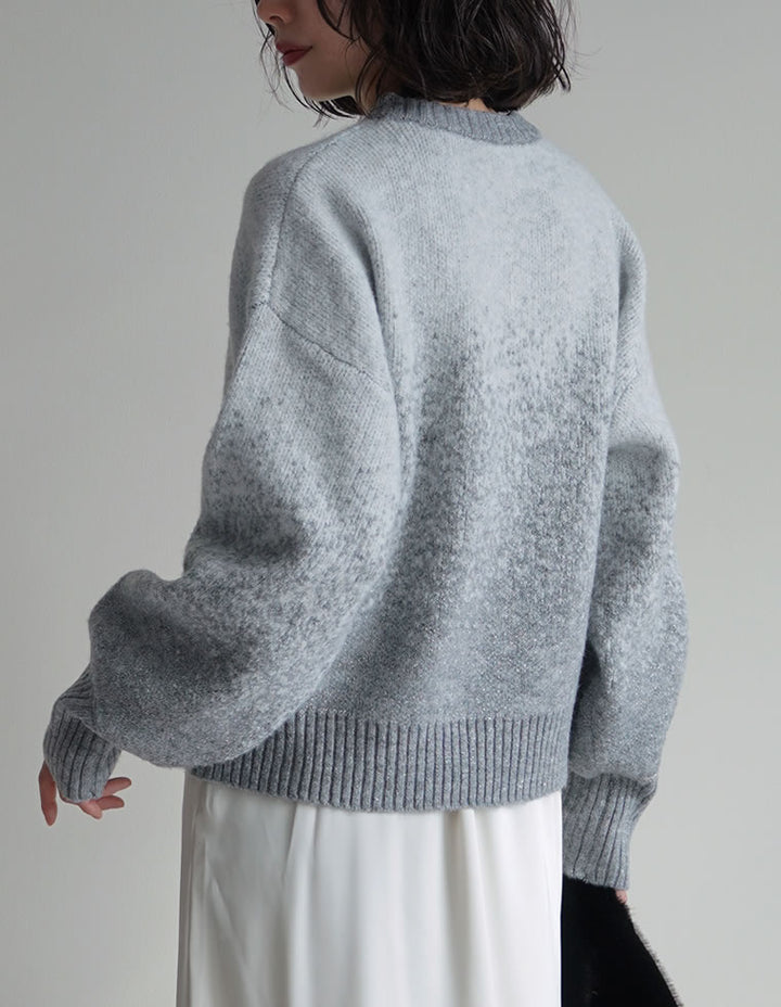 トレンドのグラデーションカラーを取り入れた、シーズンムード高まるニットプルオーバー。自然な色の移ろいが、シンプルな着こなしに奥行きをプラスします。首元や袖口には配色のような濃淡を効かせ、1枚で着映えるデザインに仕上げました。程よいゆとりのあるシルエットで、リラックス感がありながらもすっきりと見えるバランス。落ち着いたトーンでまとめているため、デイリーにもきれいめにも馴染む、大人にちょうどいいグラデーションニットです。