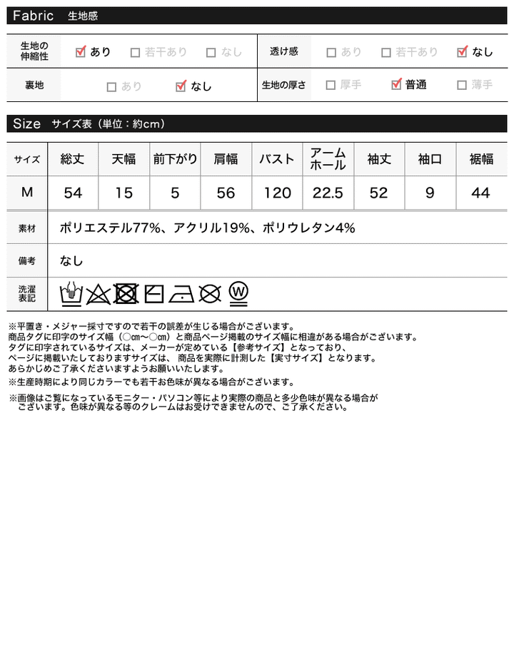 ※シルエットをくずさないために、保管の際はハンガーを使用せず、たたみ保管にしてください。