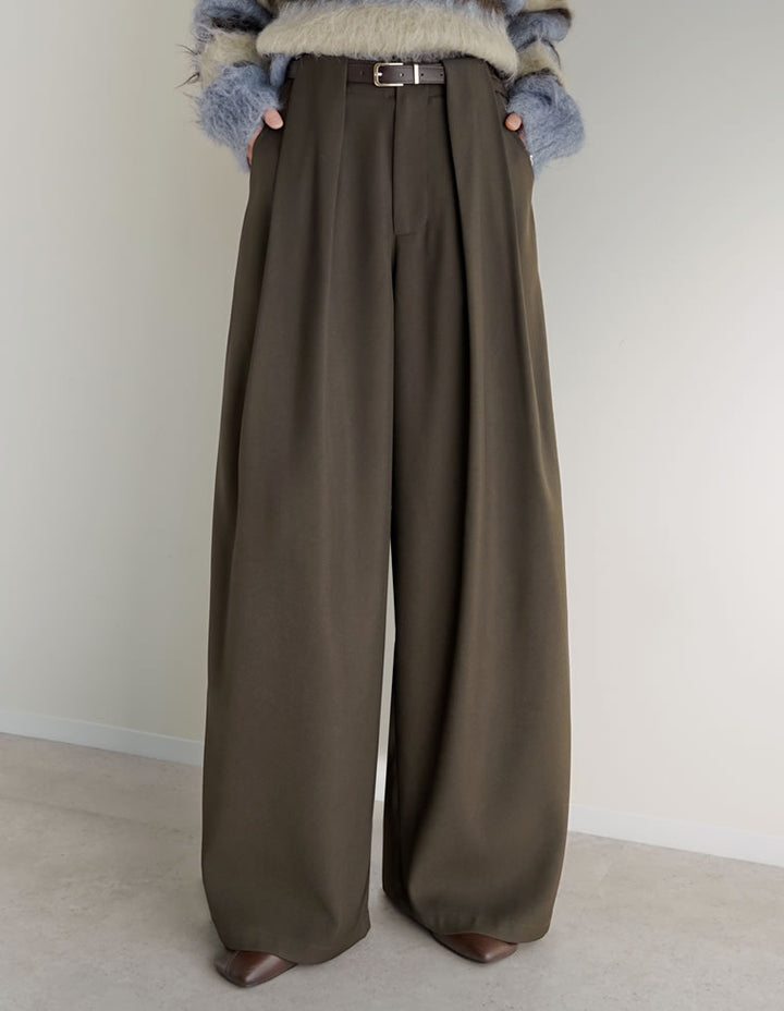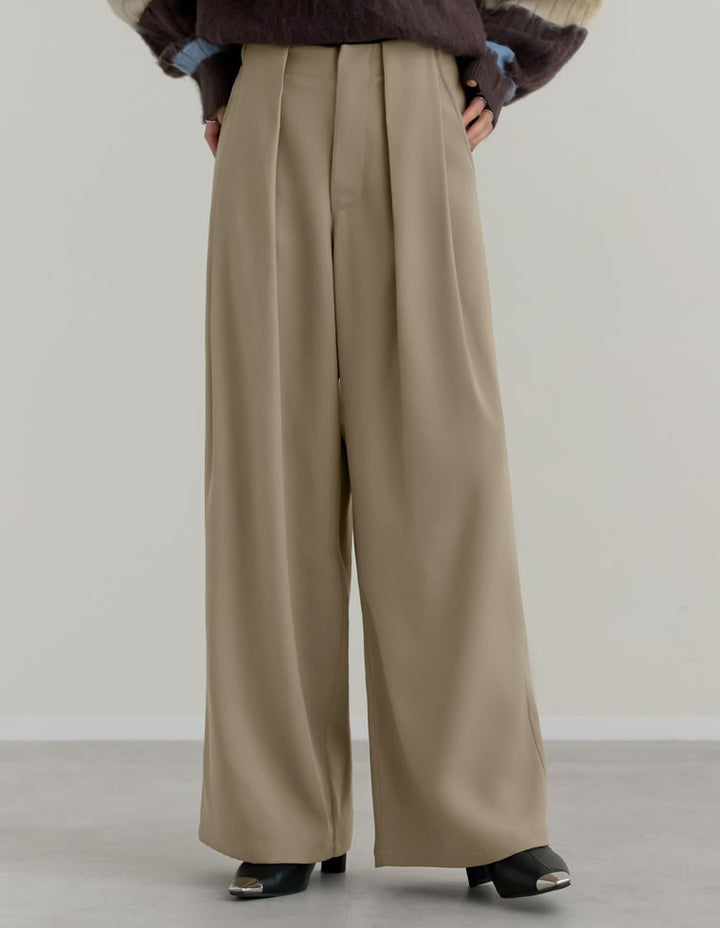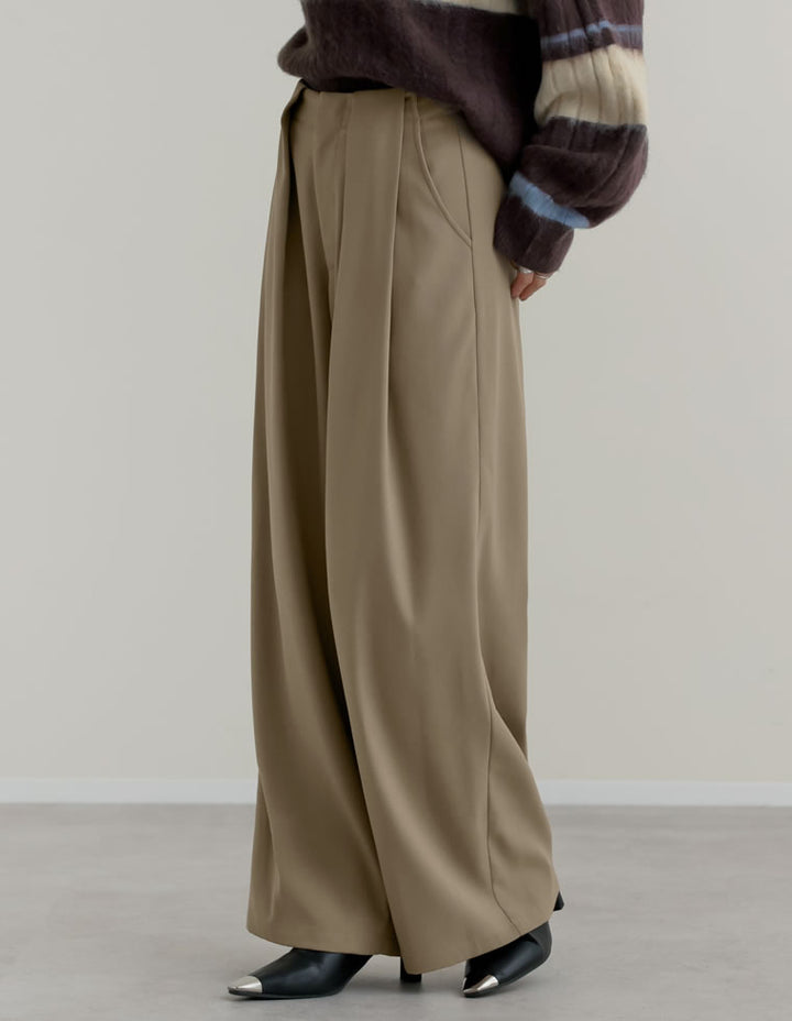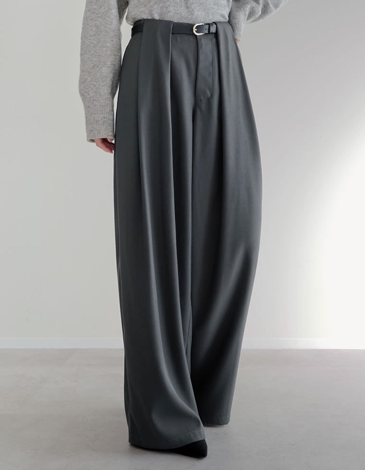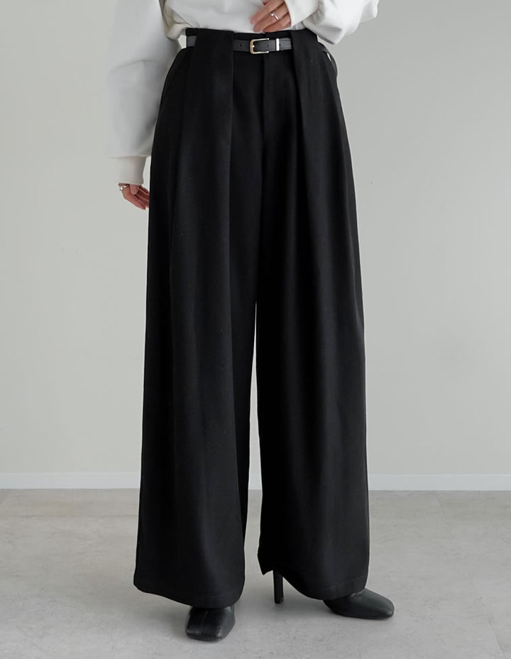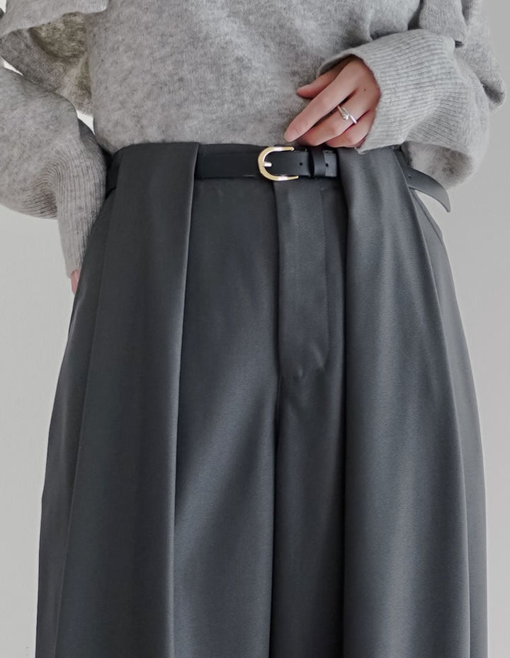 きれいめながらも高いデザイン性を誇る、タック入りワイドパンツ。