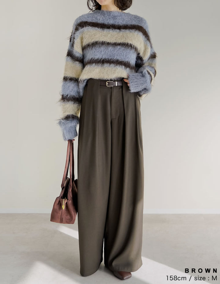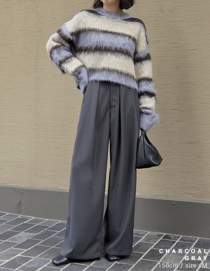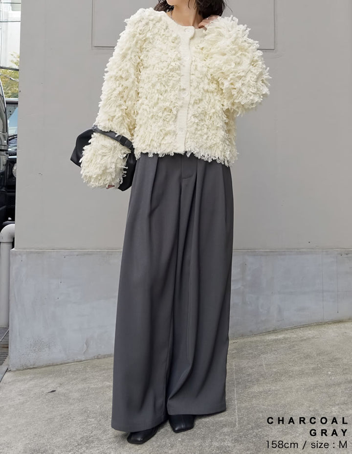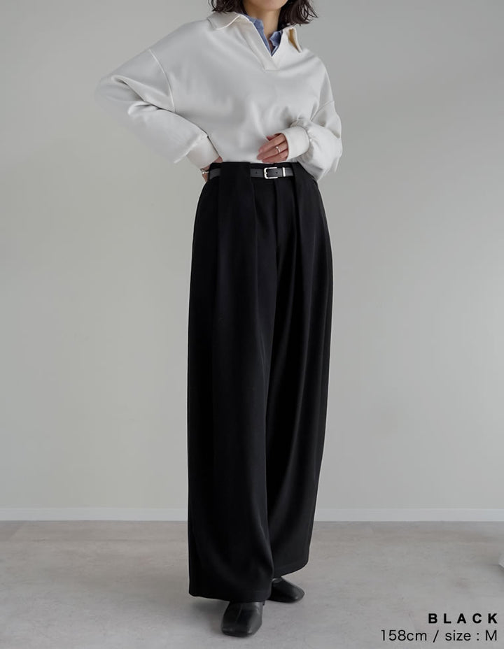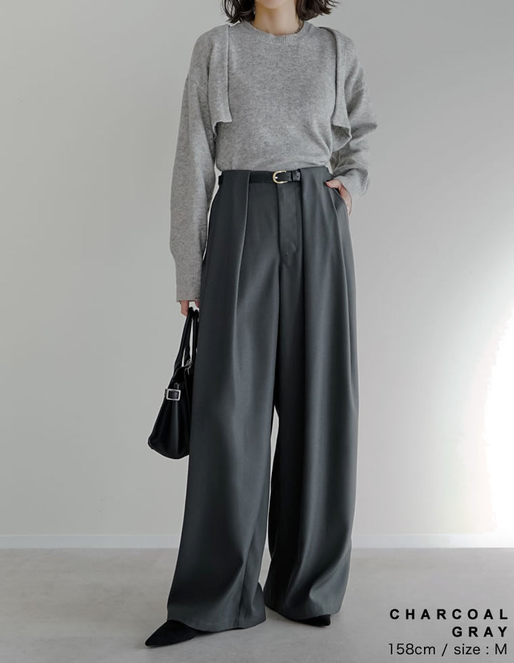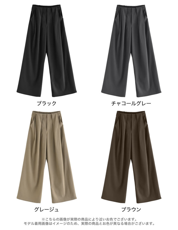 ゆったりとしたワイドシルエットながら、タックが縦のラインを強調し、美脚効果も◎