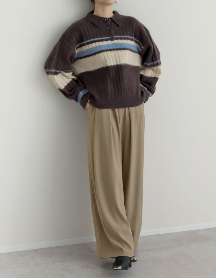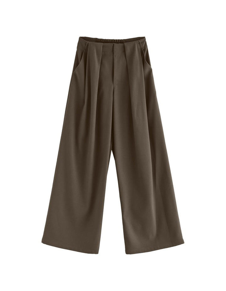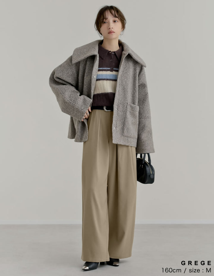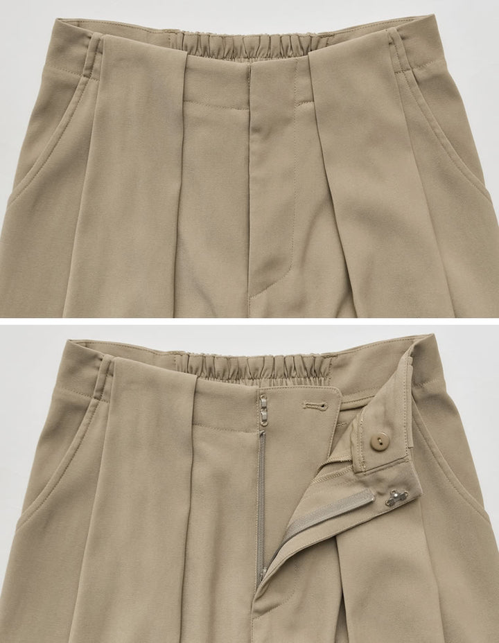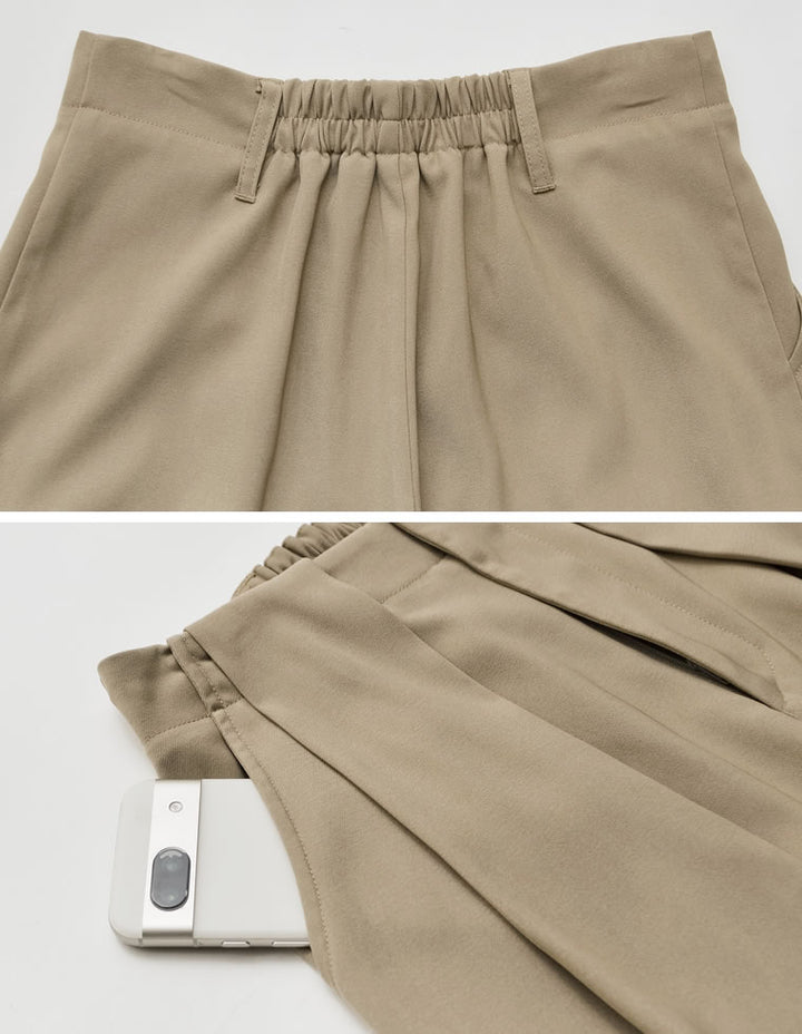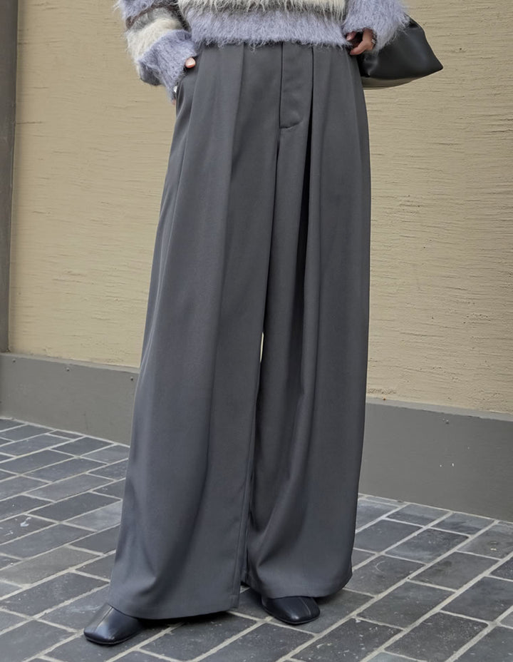 ゆったりとしたワイドシルエットながら、タックが縦のラインを強調し、美脚効果も◎