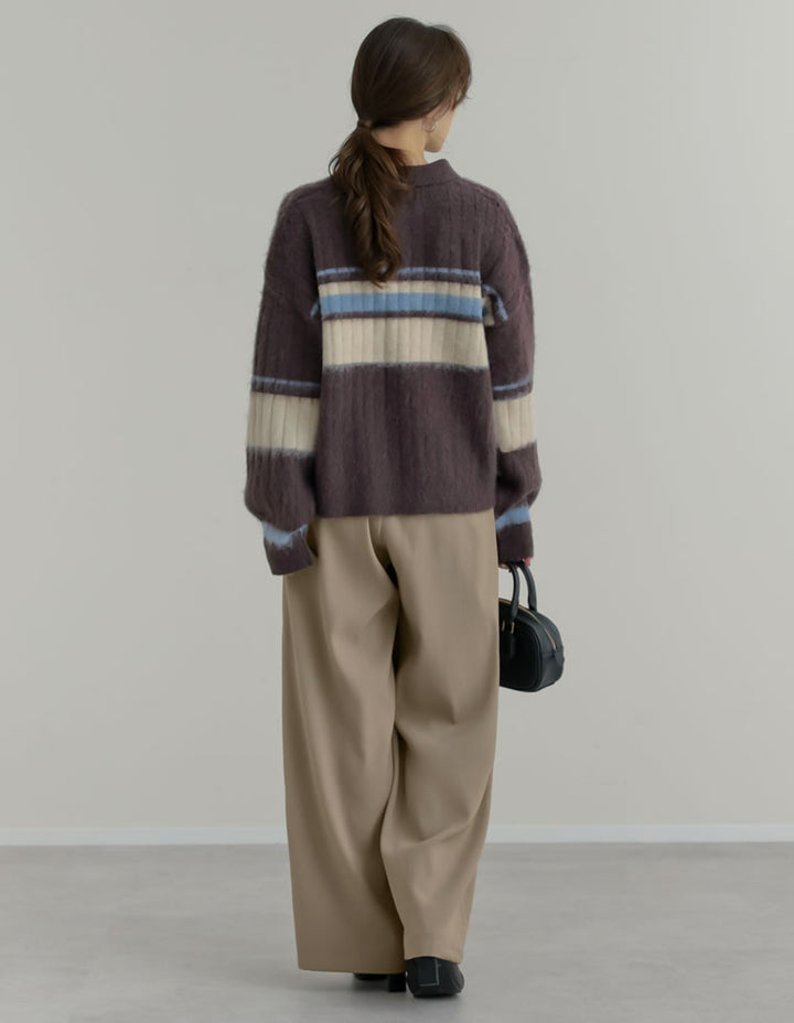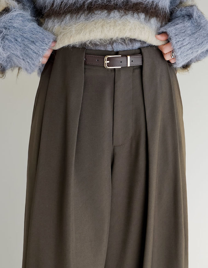 シャツやブラウスをインすれば、ベルトループのデザインが際立ち、洗練されたマニッシュスタイルが完成。