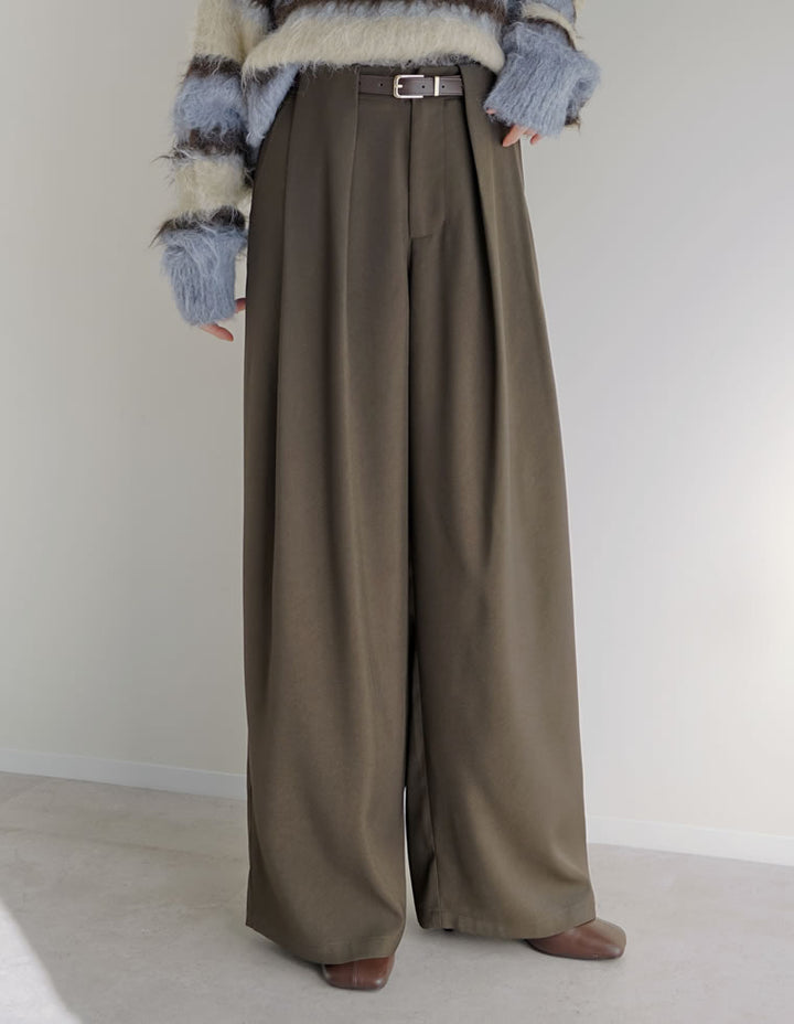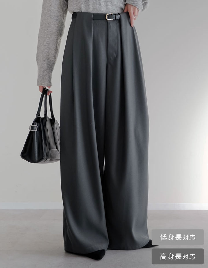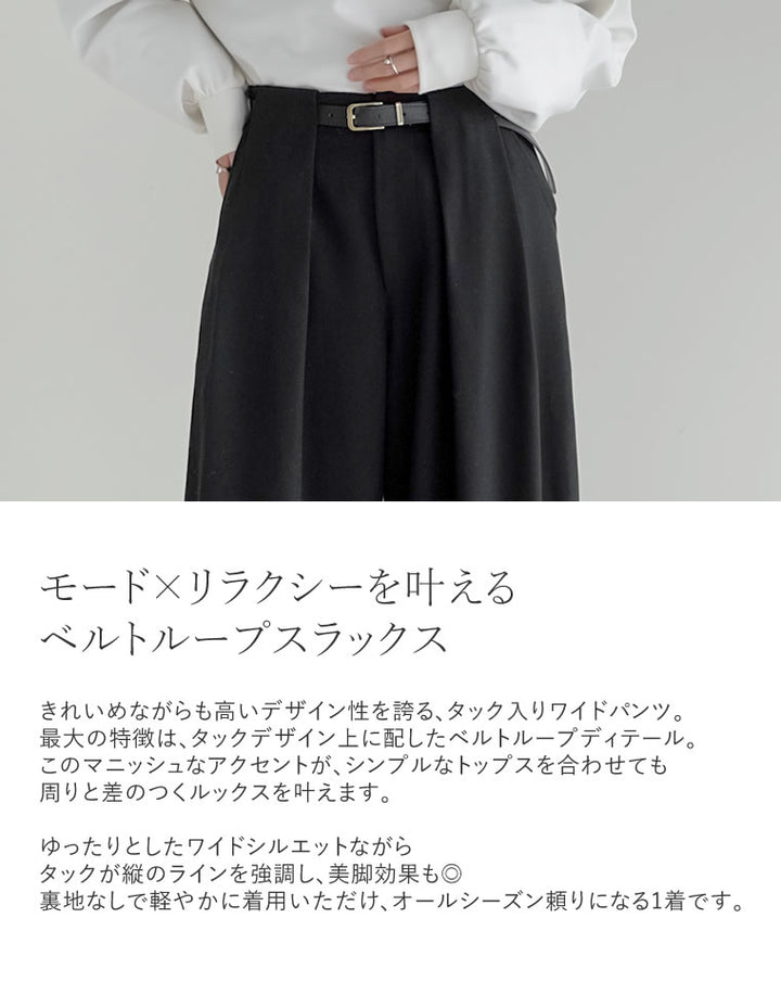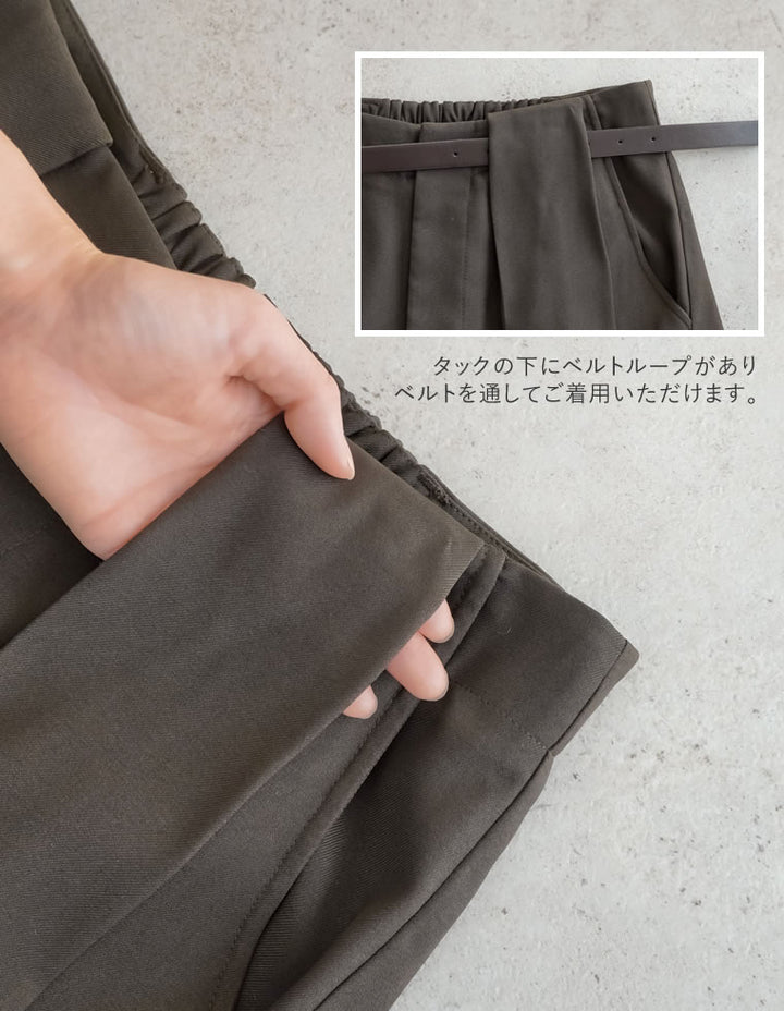[低身長/高身長サイズ有]タックベルトループデザインワイドパンツ