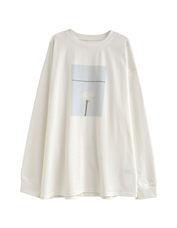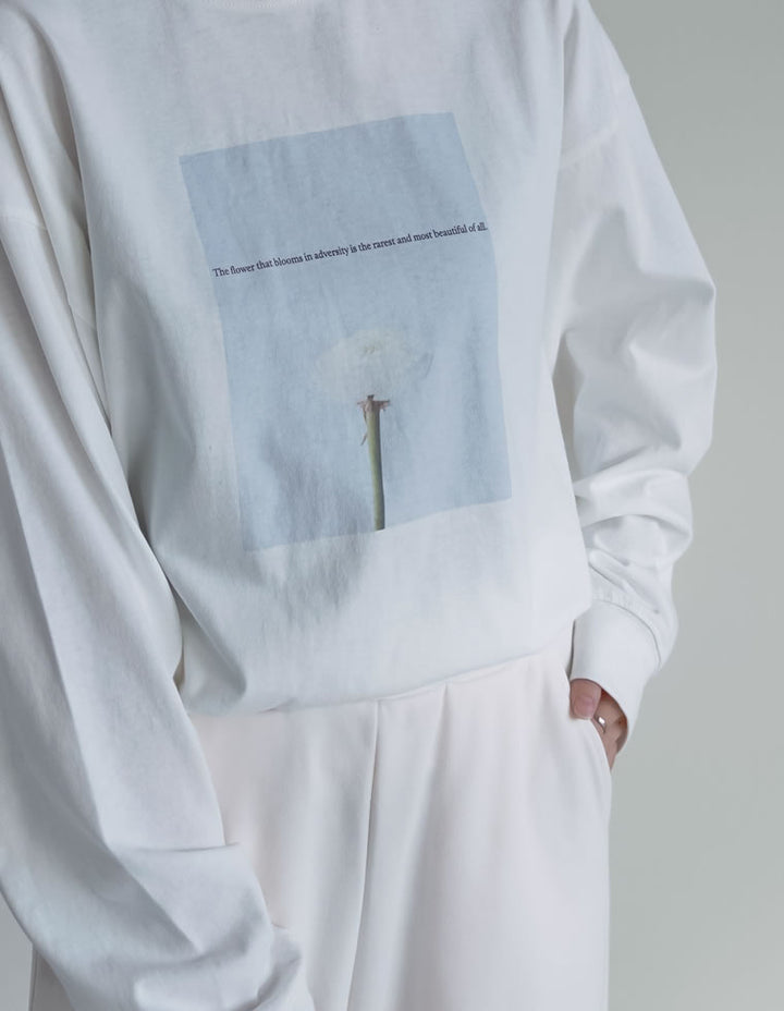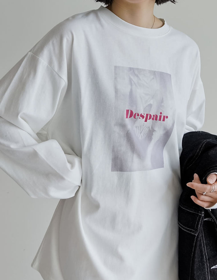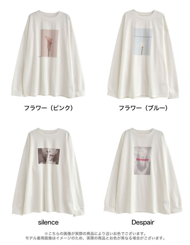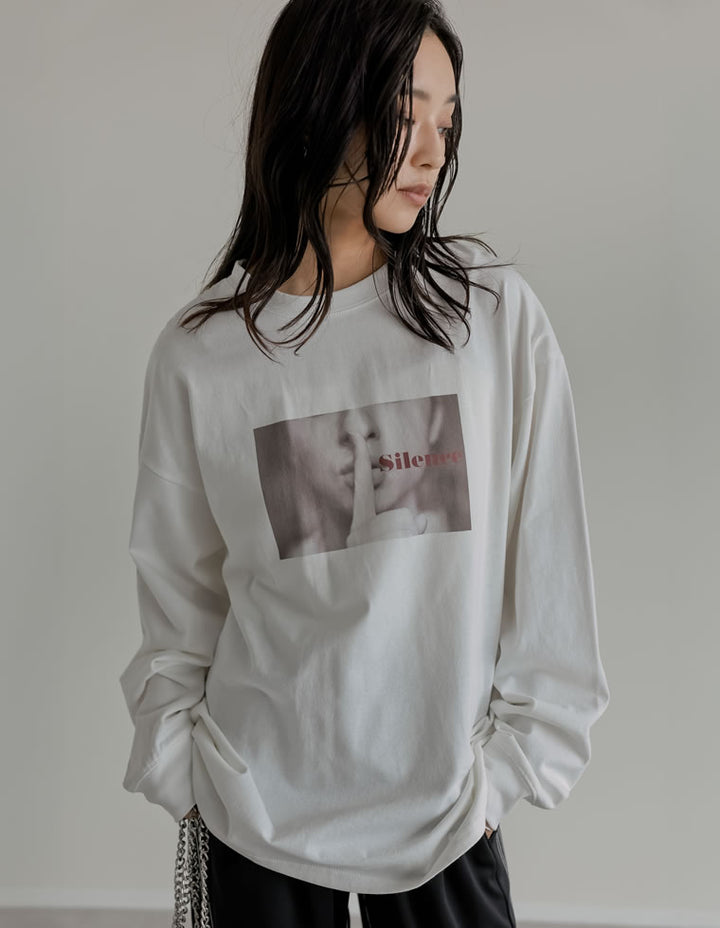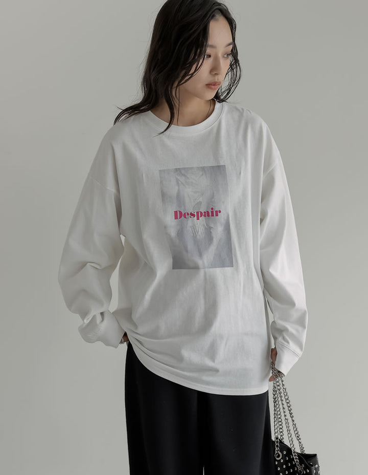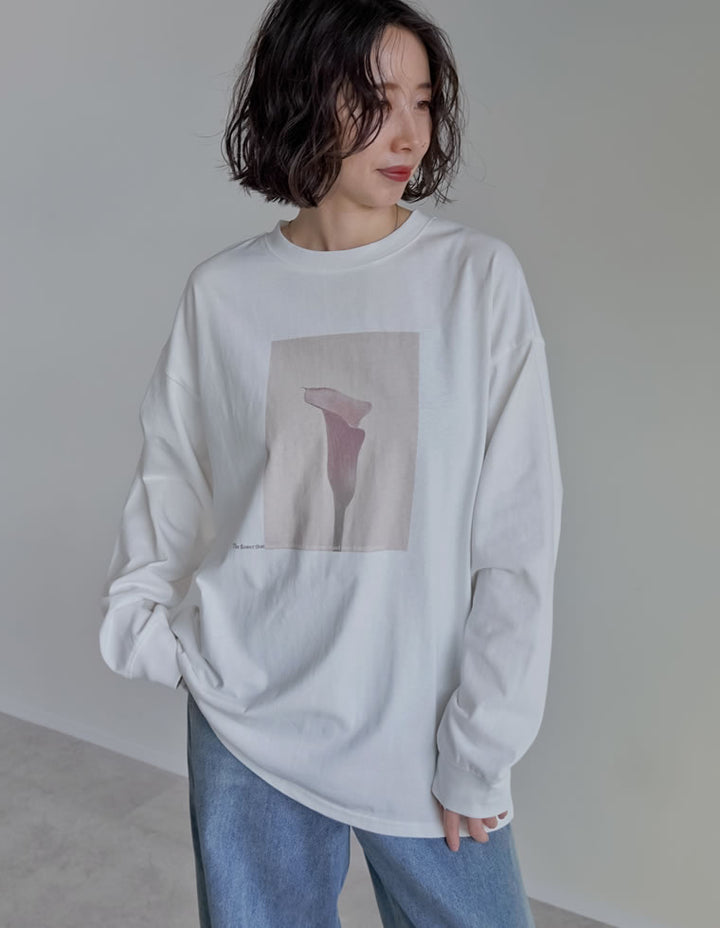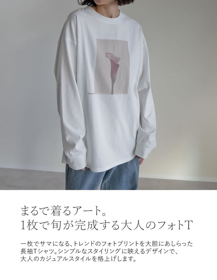 1枚でさまになる、トレンドのフォトプリント長袖Tシャツ。