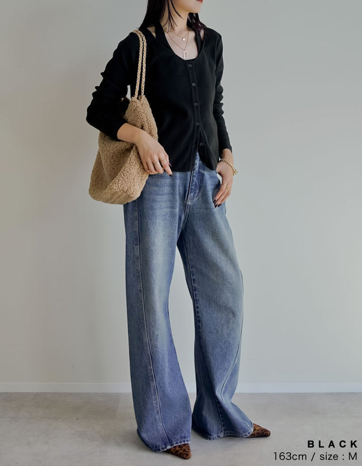 裾に向かってボリュームのあるカーブパンツやフレアパンツと特に好相性です。