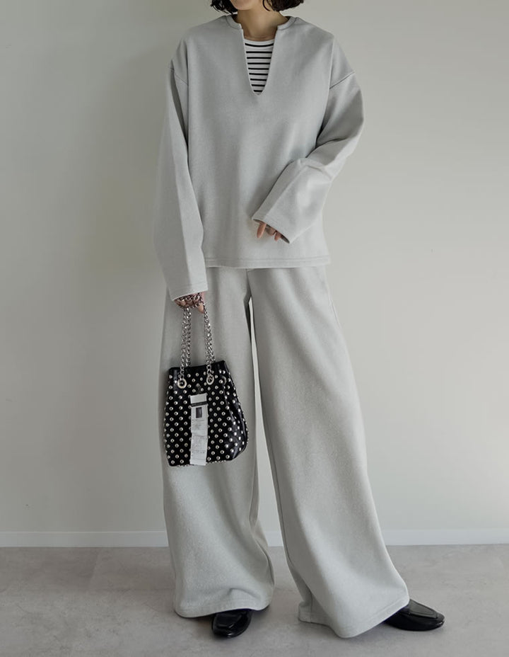 ラメ裏毛スウェット深Vネックプルオーバー(商品番号:139975)