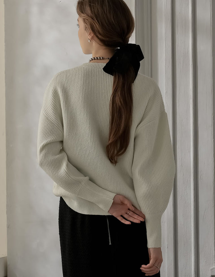 上品な煌めきとフェミニンなボリューム感が魅力のニットプルオーバー。