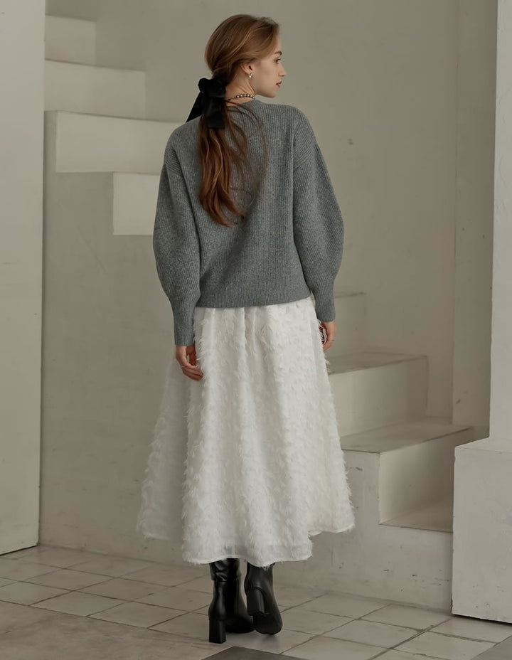 フレアスカートと合わせれば、優雅でフェミニンなコーディネートが完成。