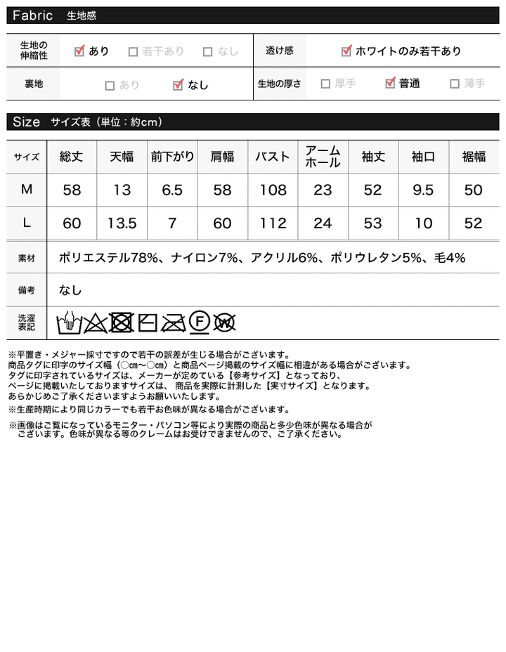 ※デリケートな素材を使用しています。強い力による縫い目の開き、引っ掛かり、摩擦にご注意ください。
