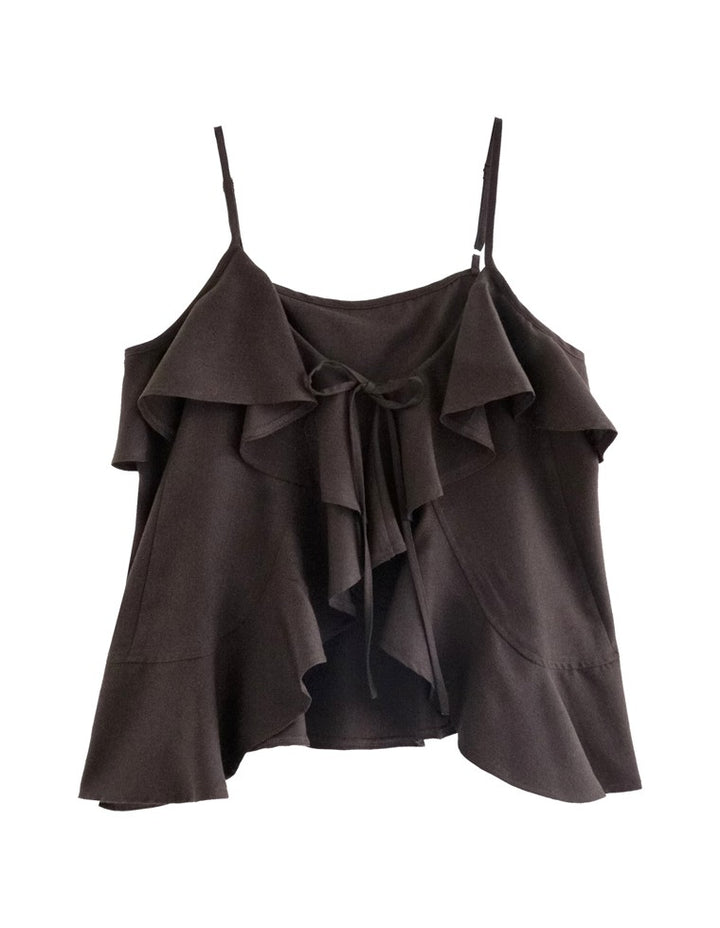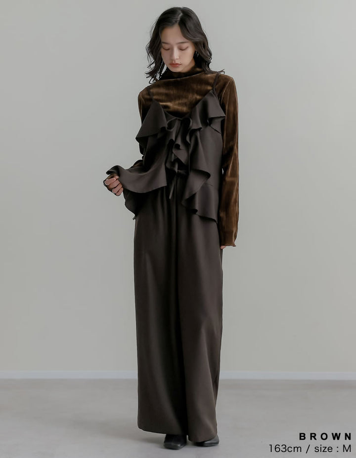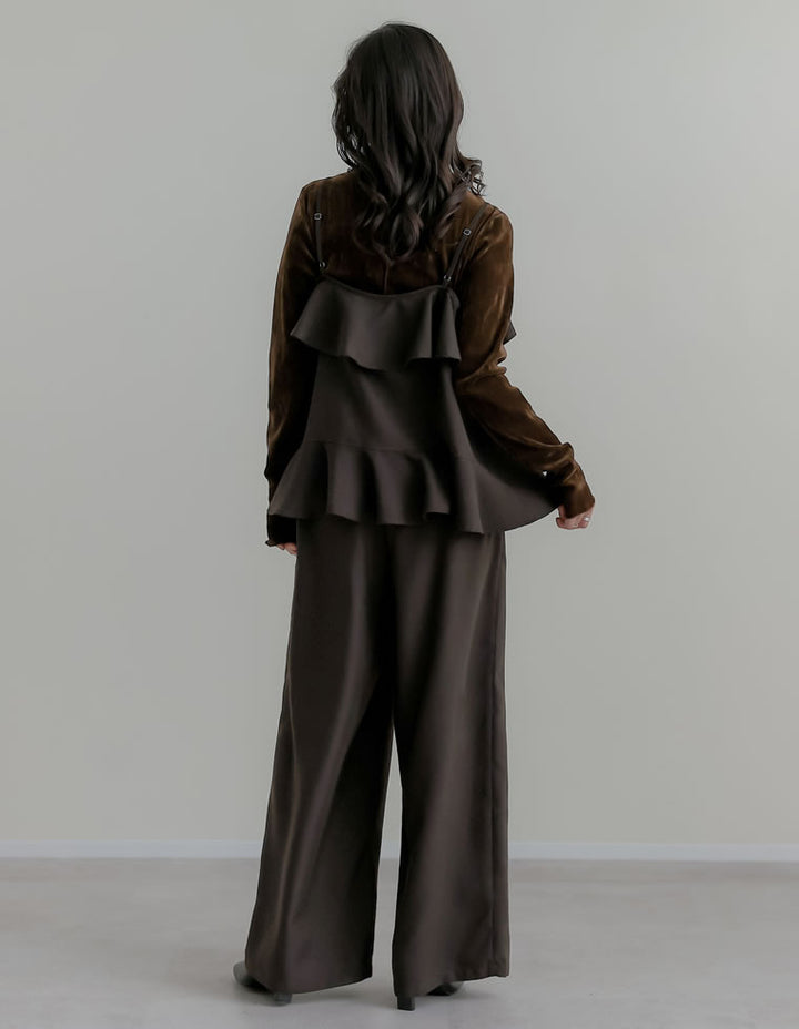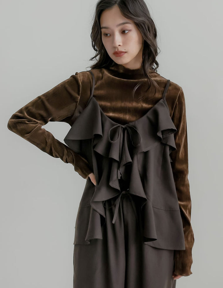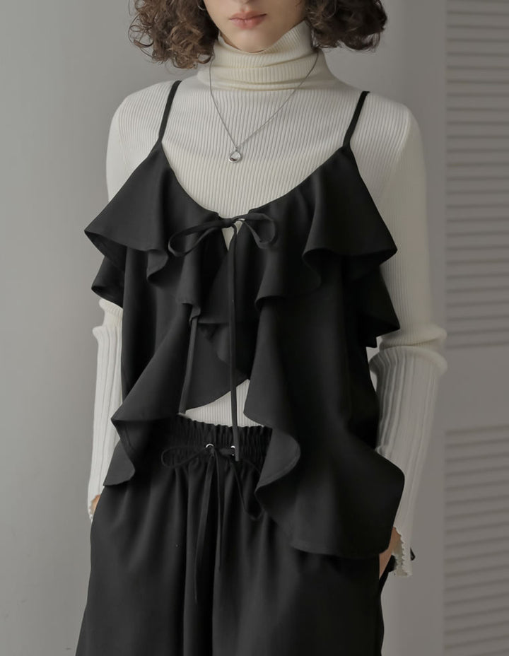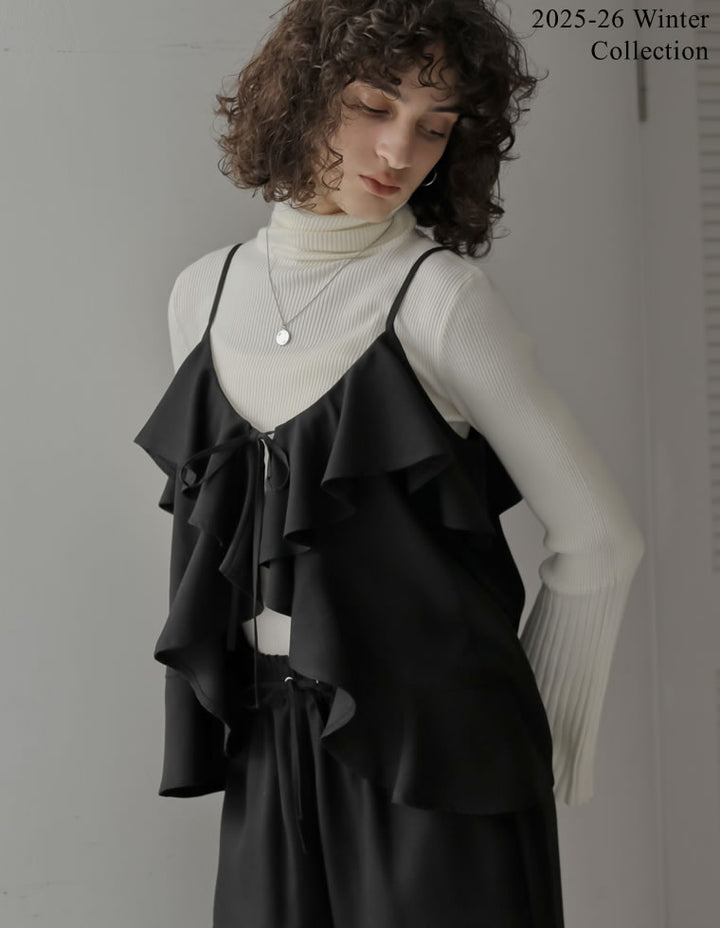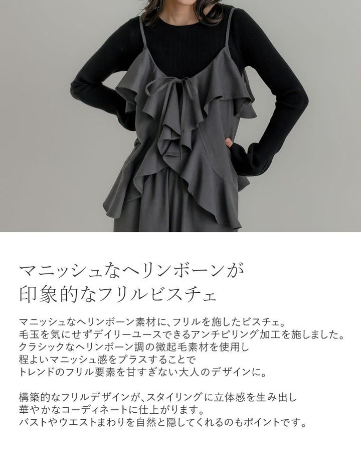 [2025 WINTER PRE ORDER][アンチピリング][毛玉になりにくい]ヘリンボーン微起毛フリルキャミソールビスチェ[mb]