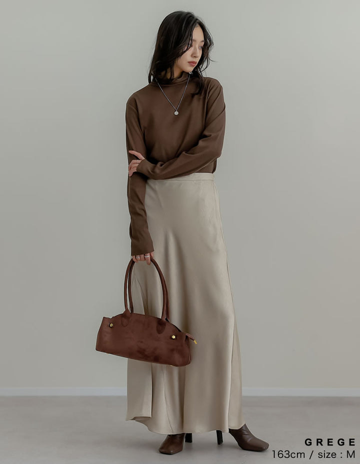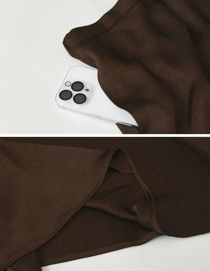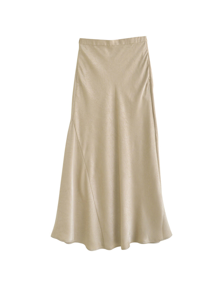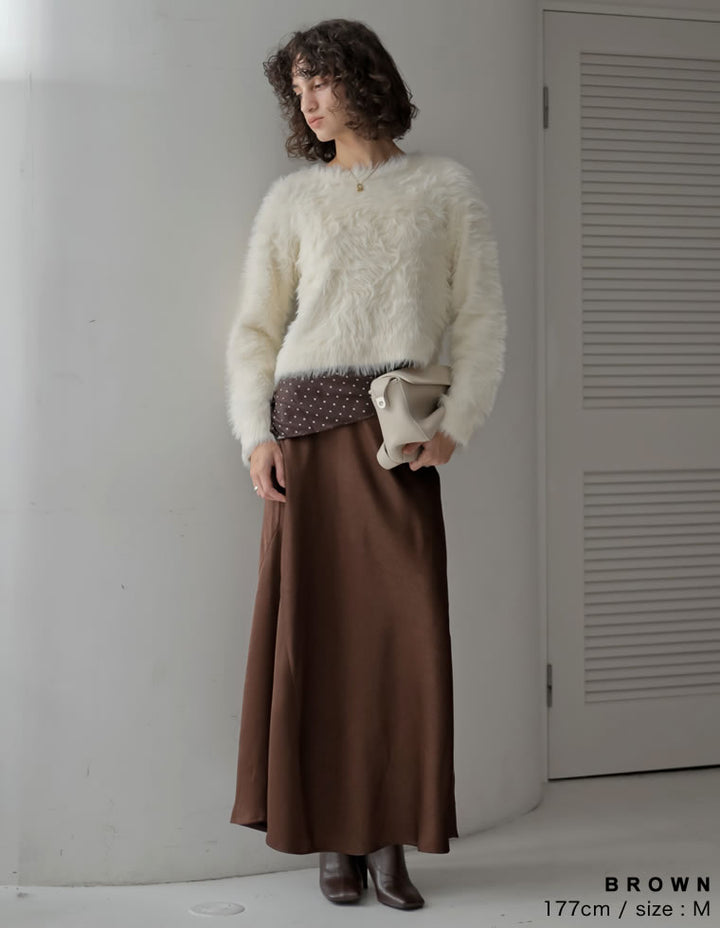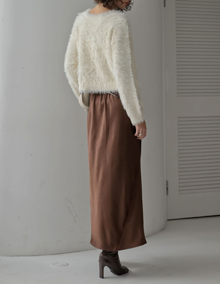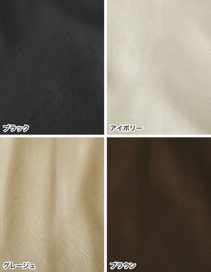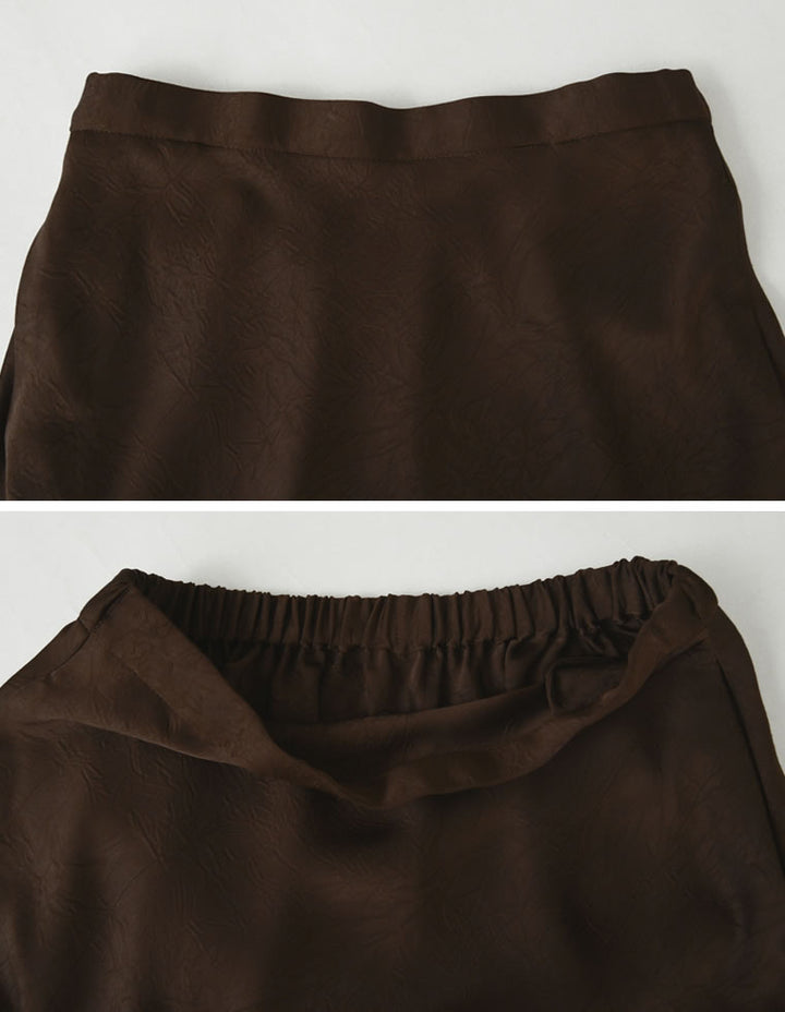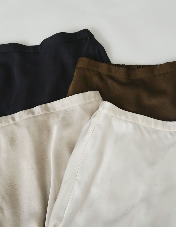 全体にシワ加工を施し、柔らかな質感を持つサテン調のナロースカートが登場。