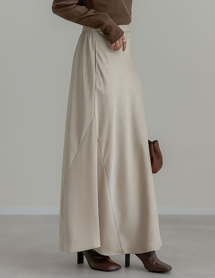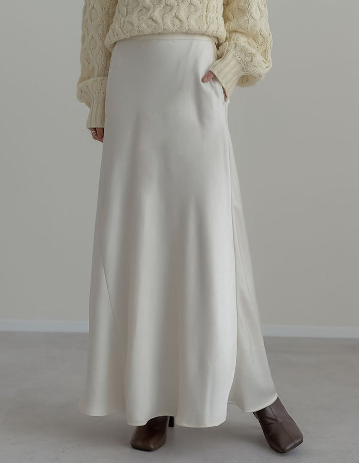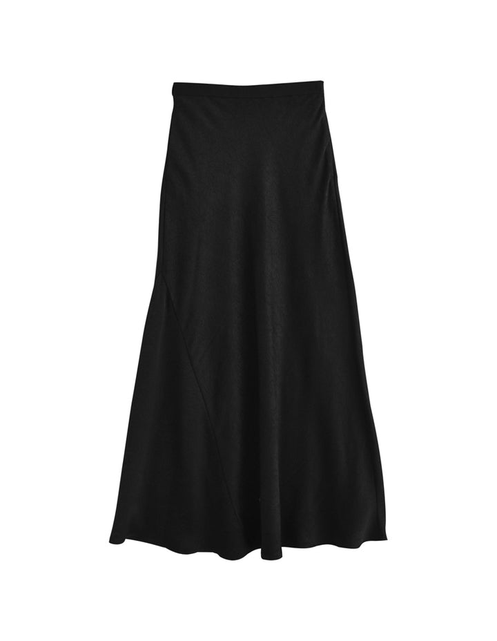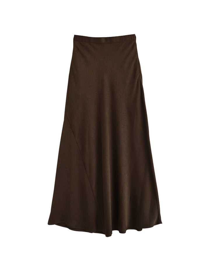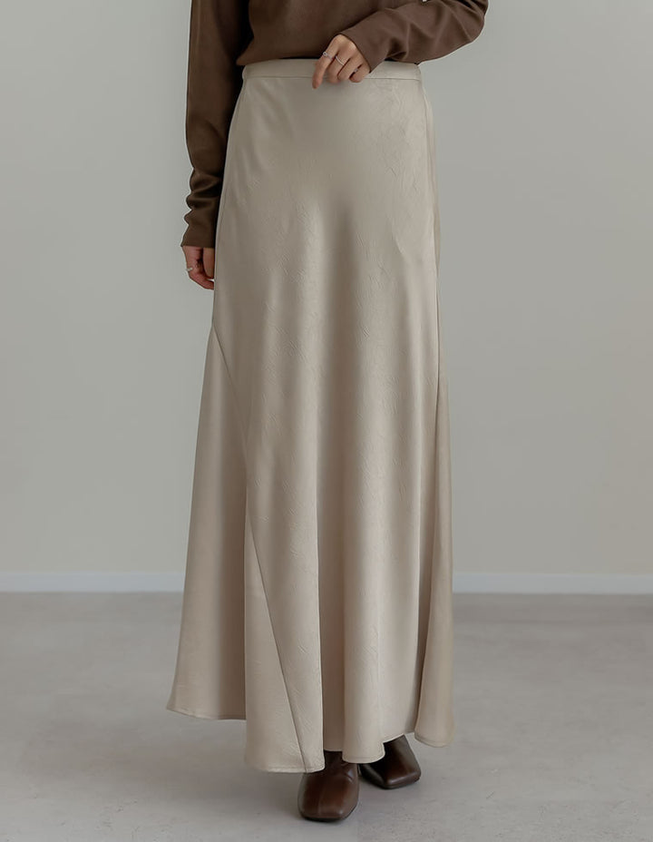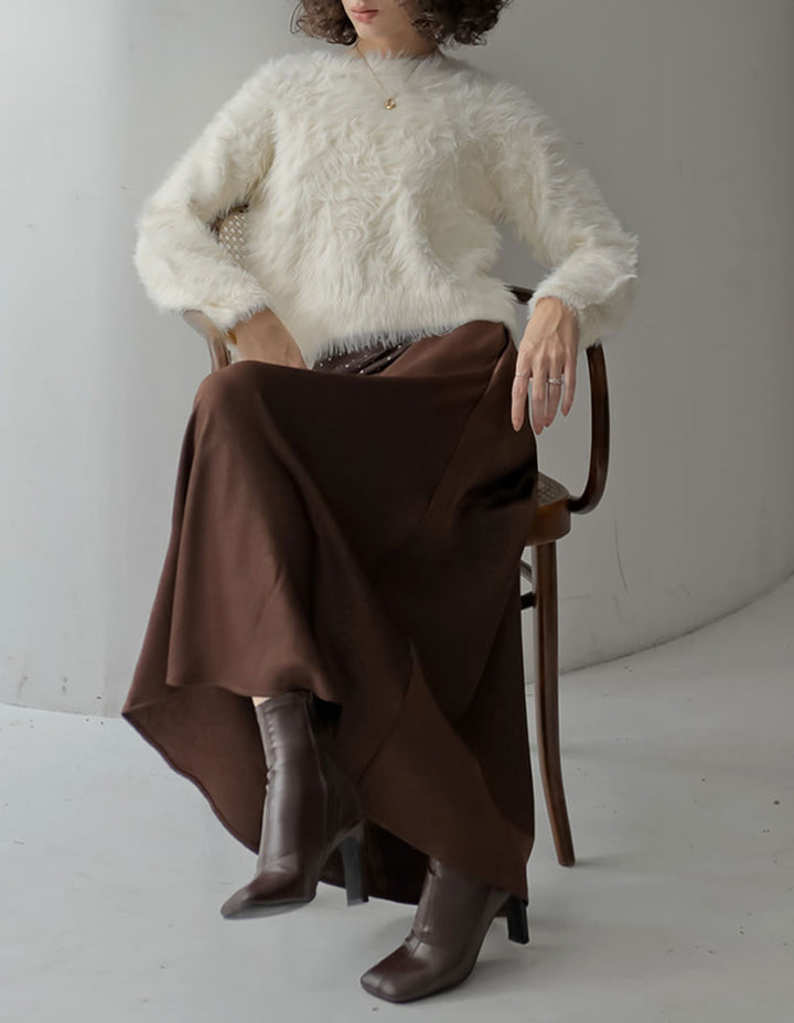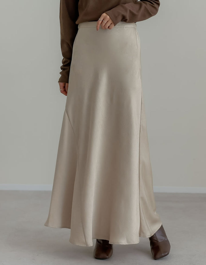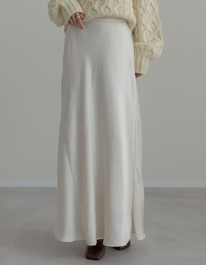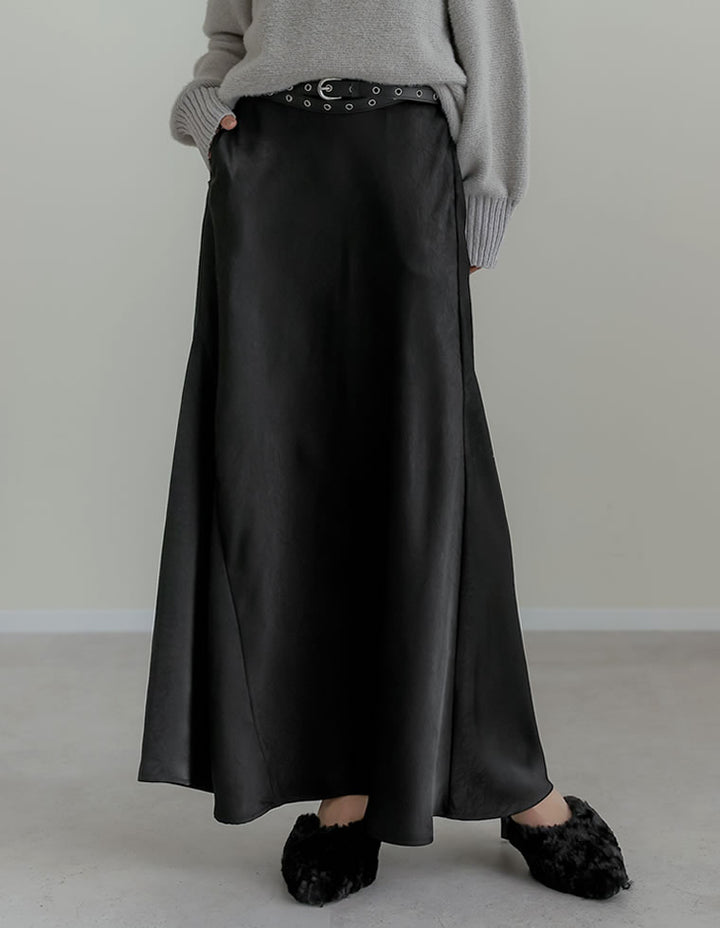 全体にシワ加工を施し、柔らかな質感を持つサテン調のナロースカートが登場。