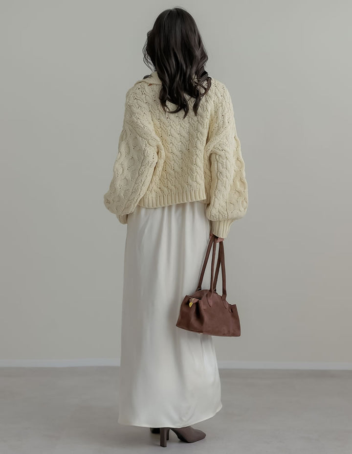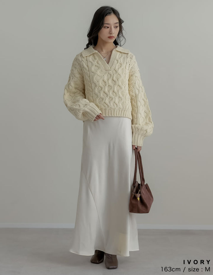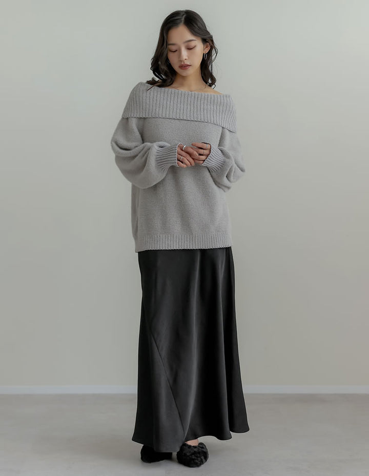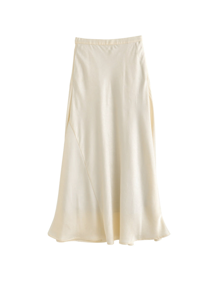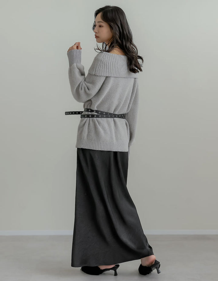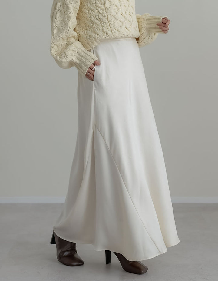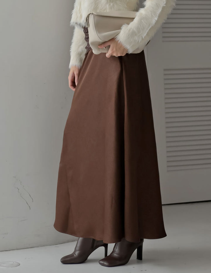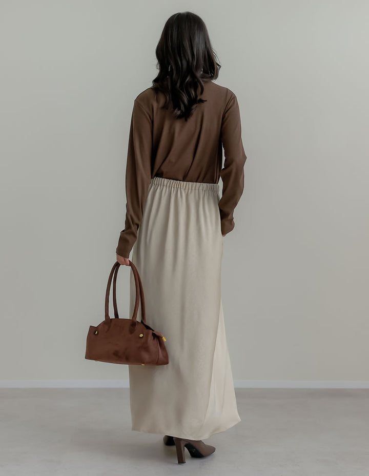 全体にシワ加工を施し、柔らかな質感を持つサテン調のナロースカートが登場。