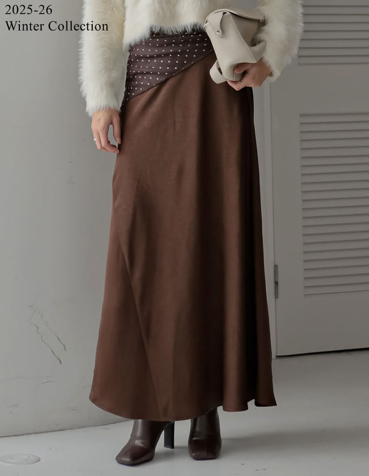 [2025 WINTER PRE ORDER][低身長サイズ有]シワ加工サテン切り替えナロースカート