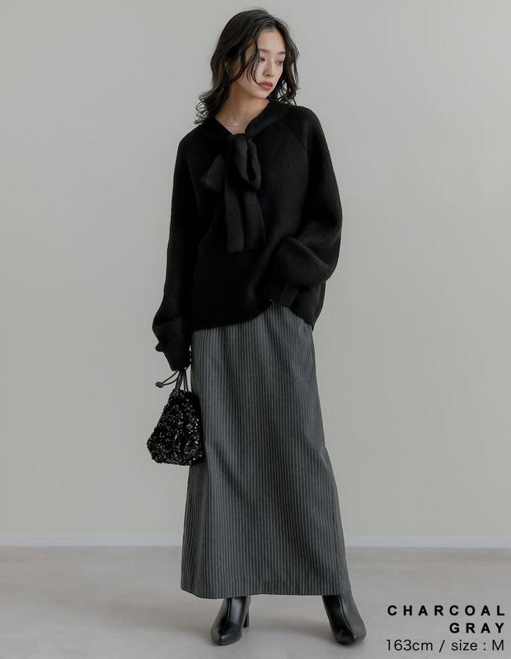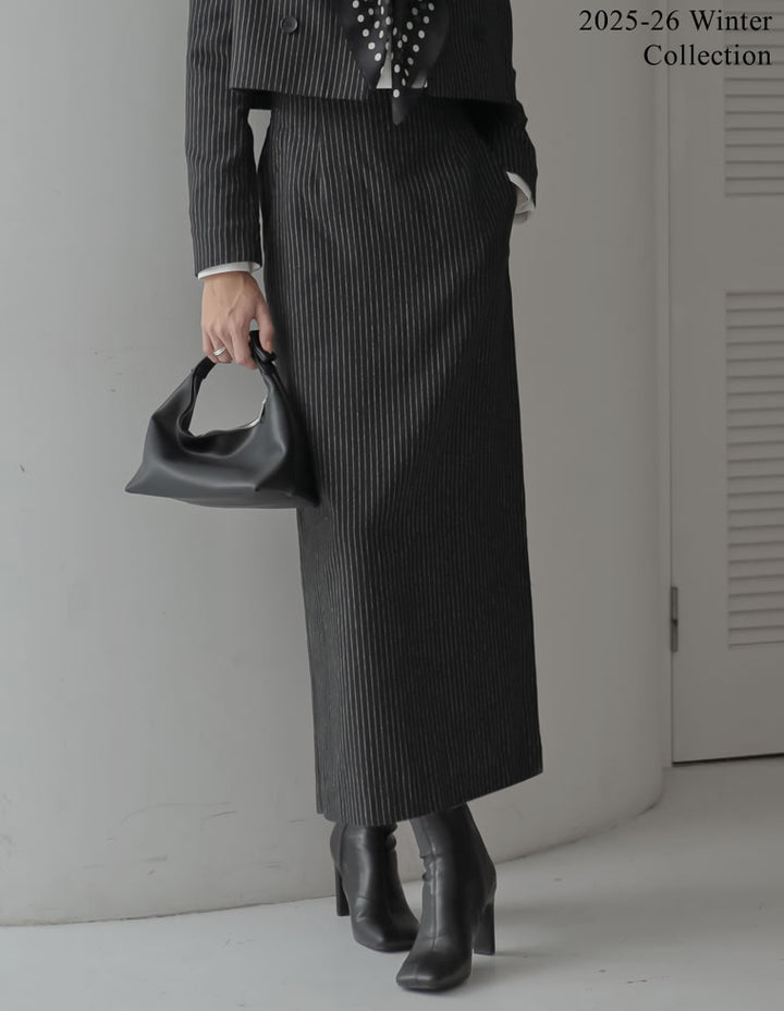 [2025 WINTER PRE ORDER][低身長サイズ有]微起毛ストライプタイトスカート