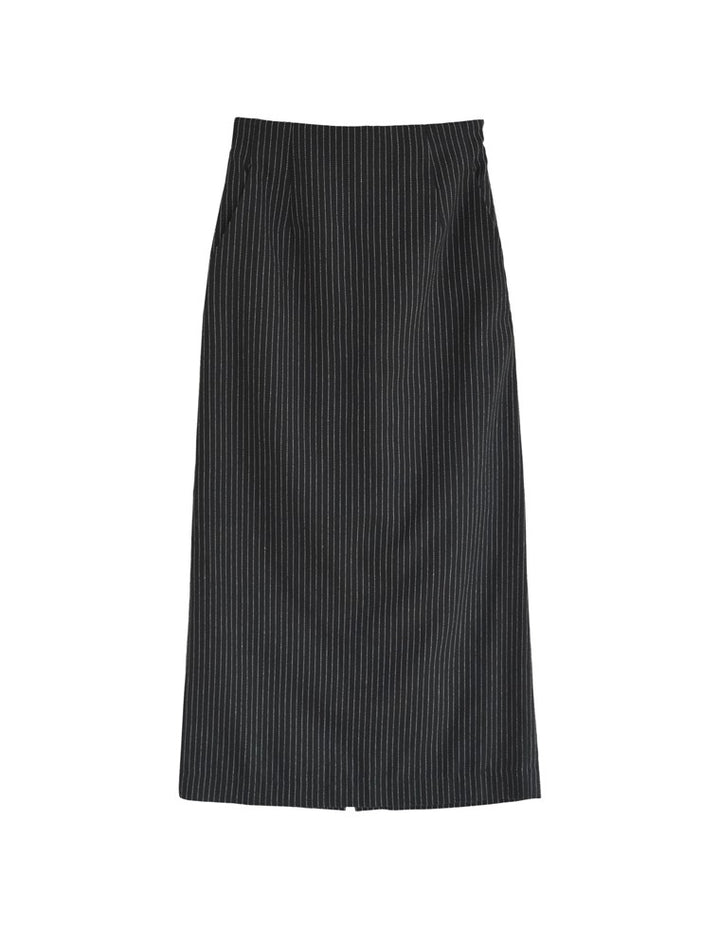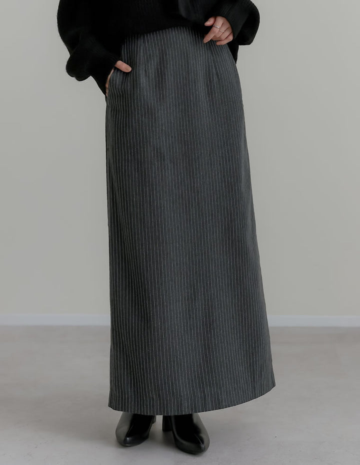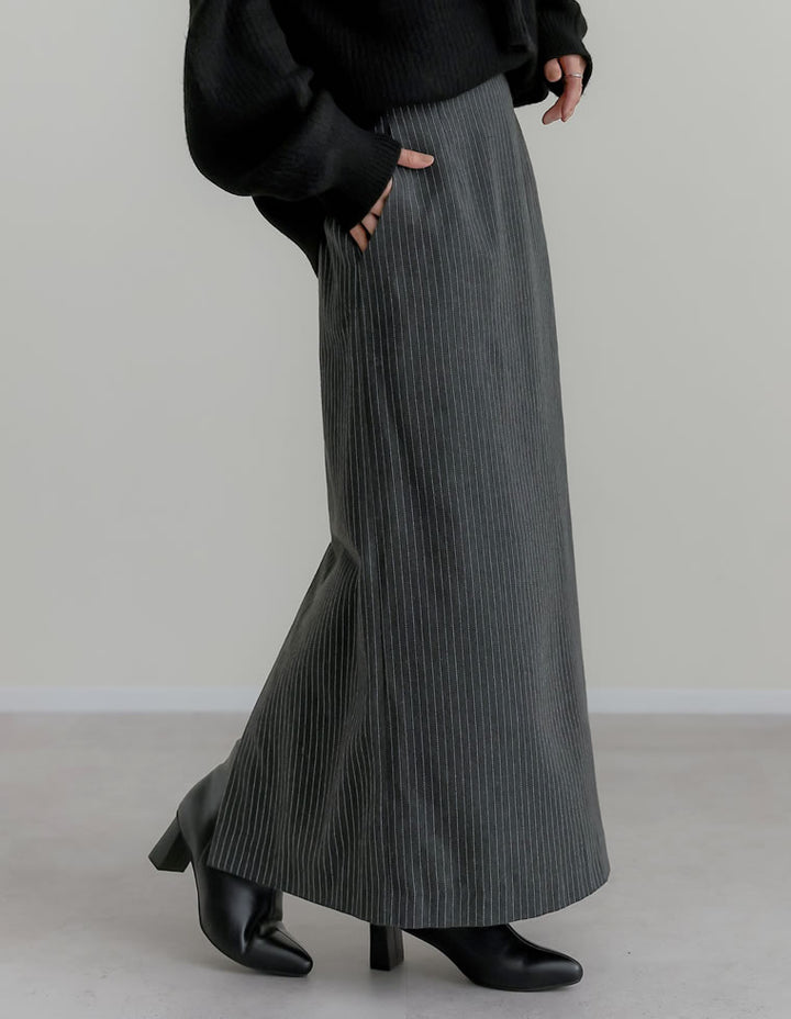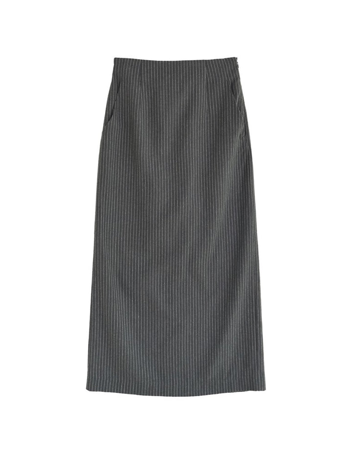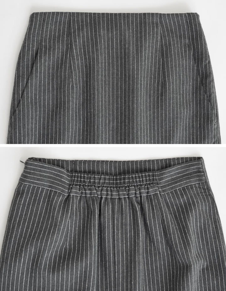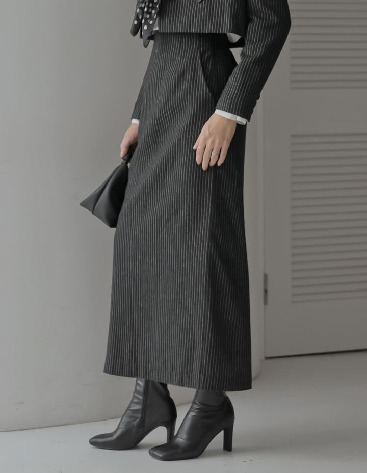 トラッドな印象を持つ微起毛のピンストライプ柄を採用したタイトスカート。