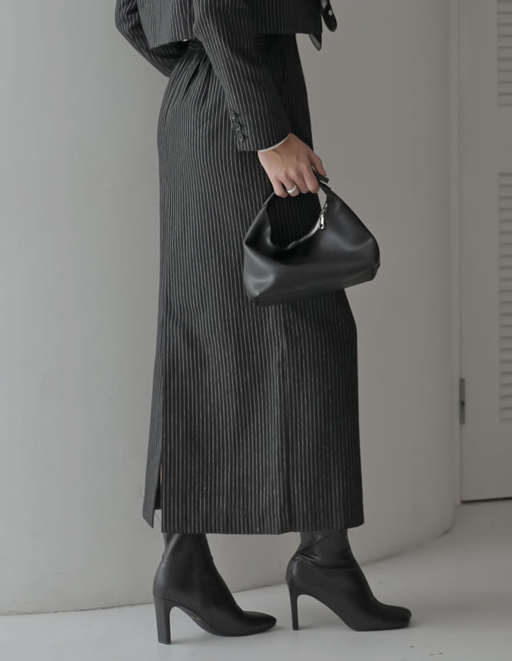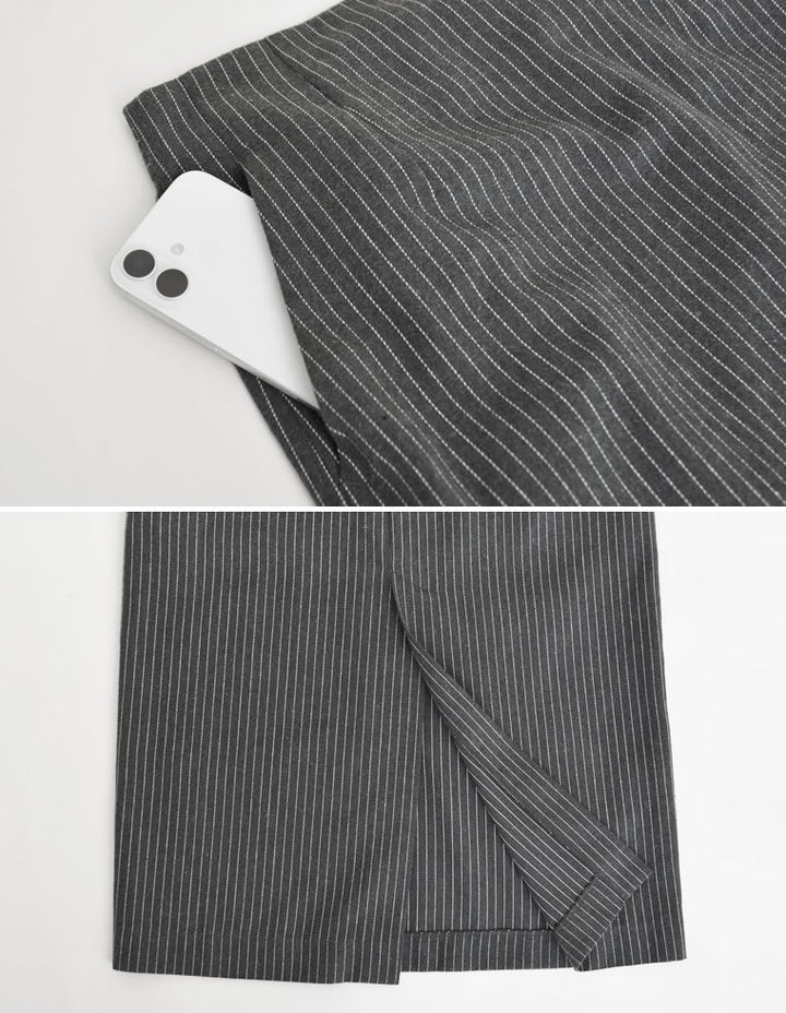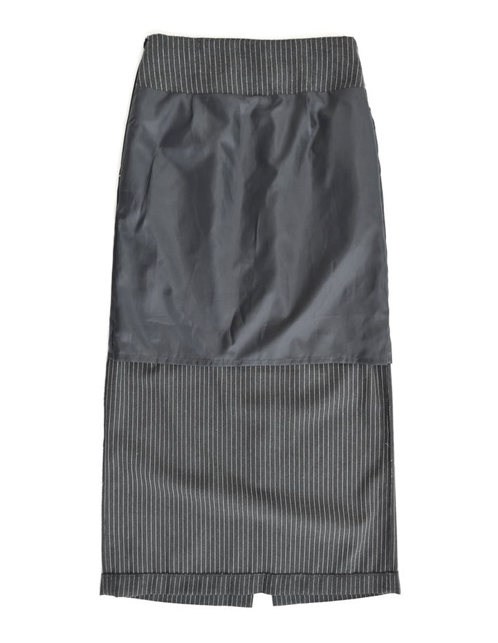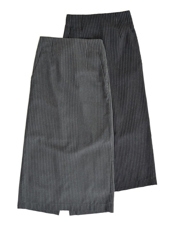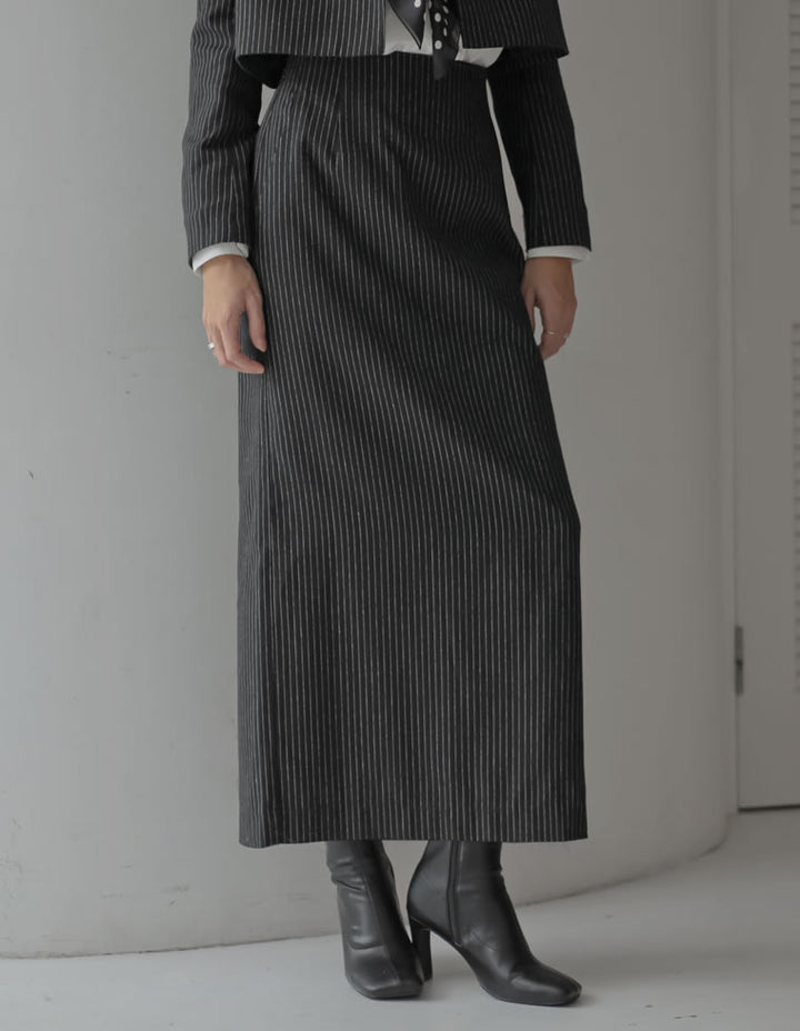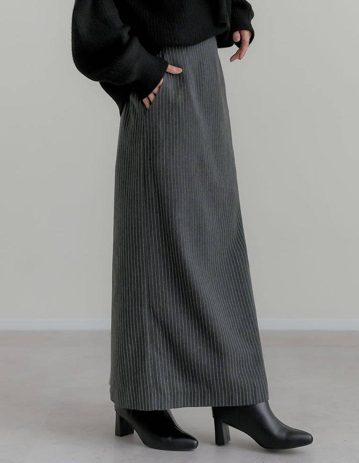 トラッドな印象を持つ微起毛のピンストライプ柄を採用したタイトスカート。