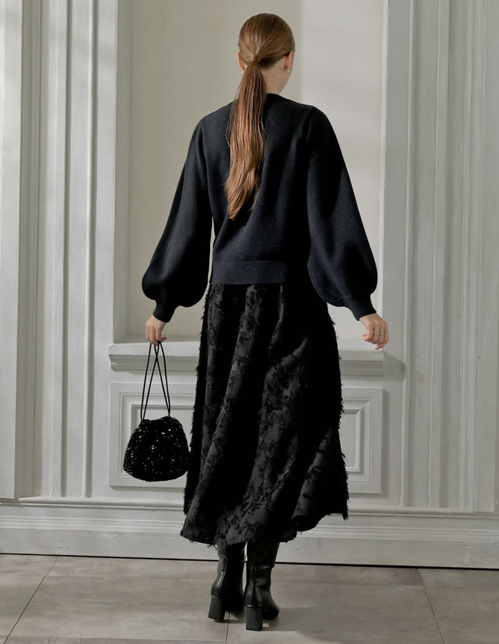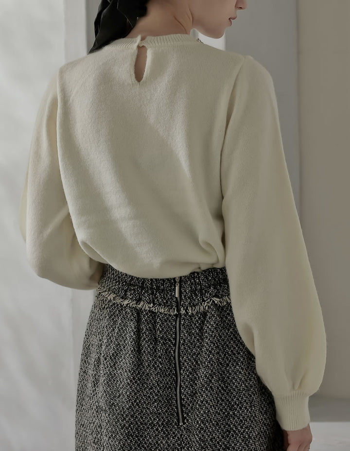 ふっくらとしたボリュームスリーブで、フェミニンな魅力を後押し。