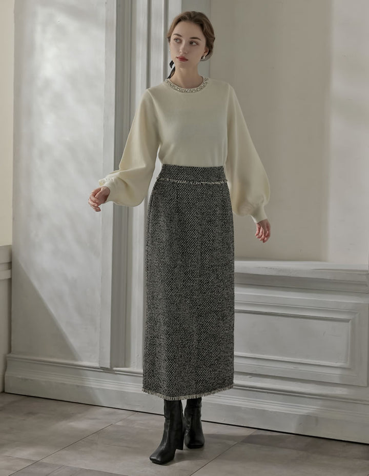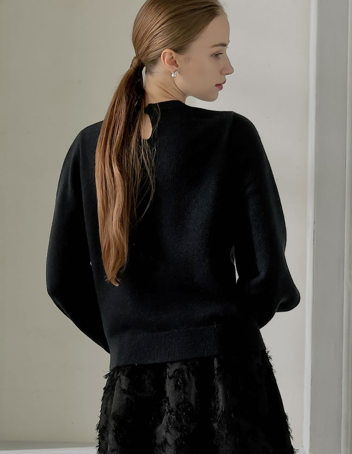[2025-26 WINTER COLLECTION][MEISM by Re:EDIT]ビジュークルーネックパフスリーブニットプルオーバー