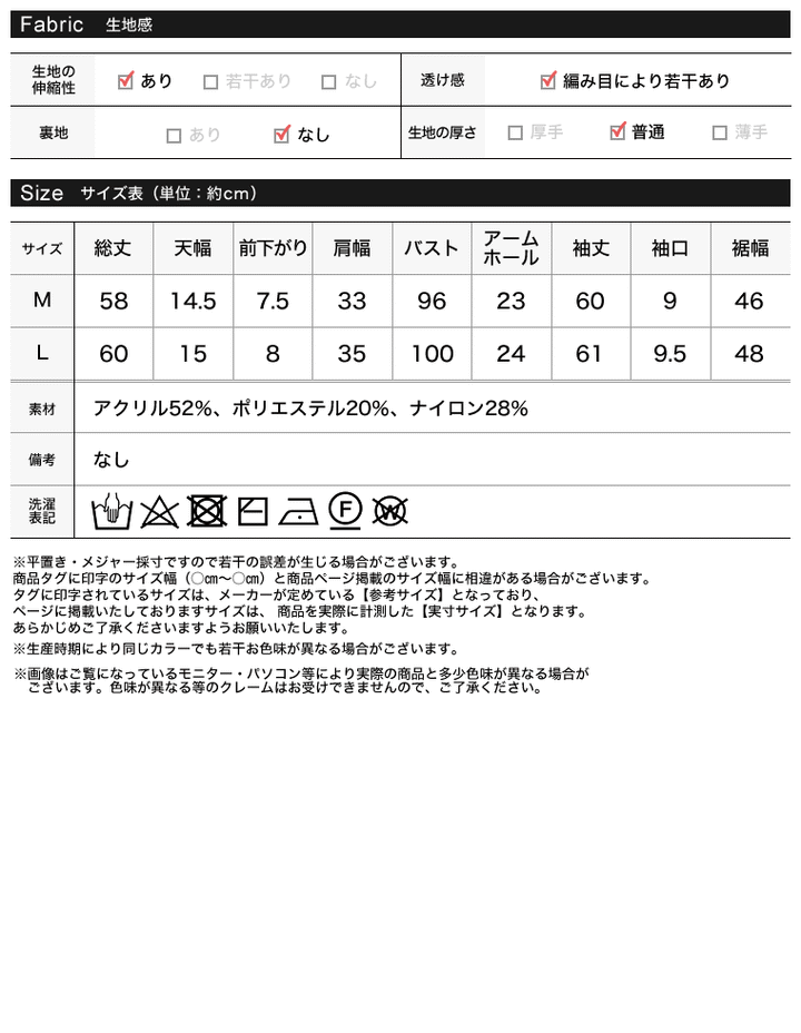 ※速やかに脱水、乾燥をしていただけますようお願いいたします。※シルエットをくずさないために、保管の際はハンガーを使用せず、たたみ保管にして下さい。