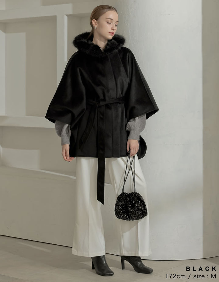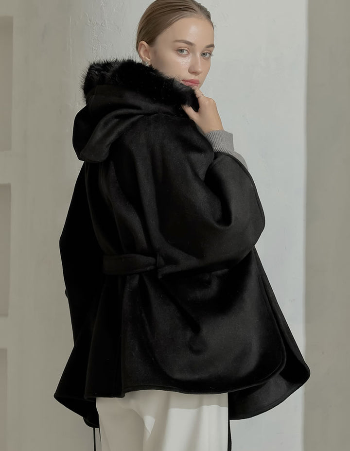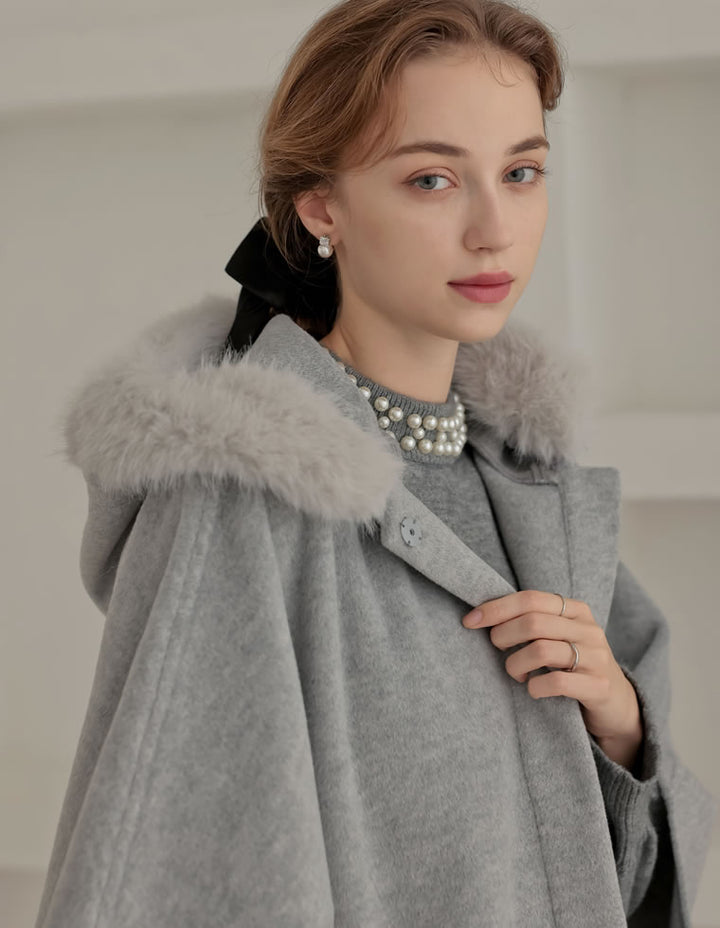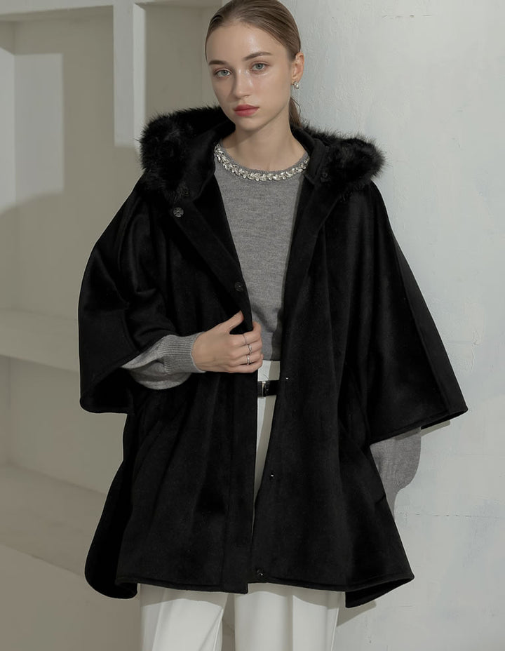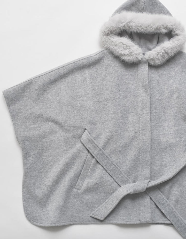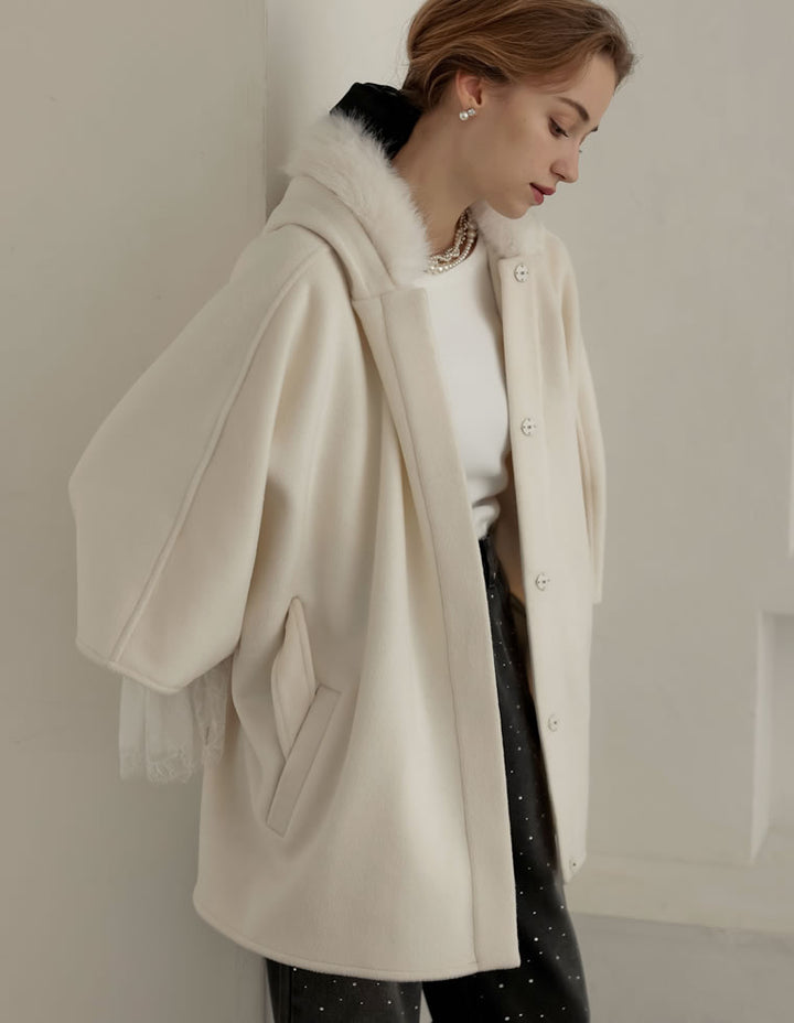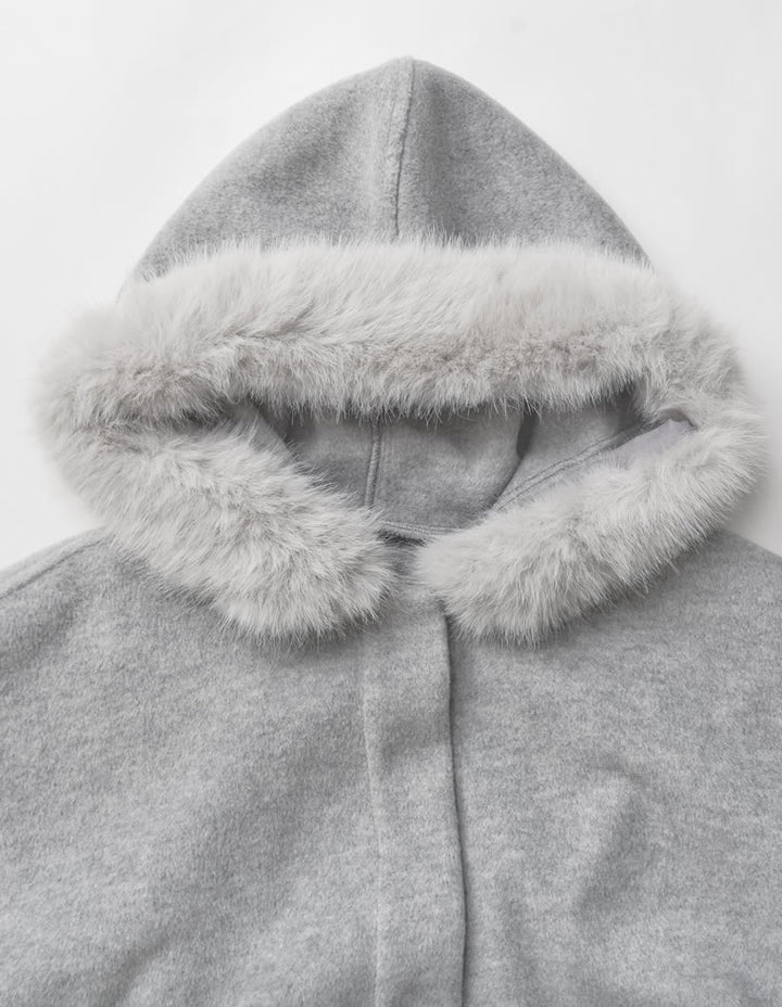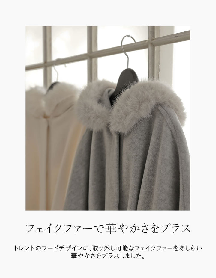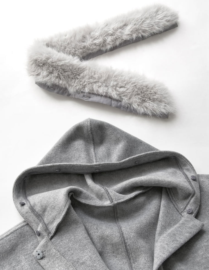 トレンドのフードデザインに、取り外し可能なフェイクファーをあしらい、華やかさをプラスしました。