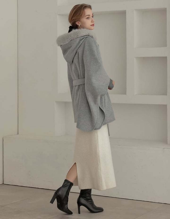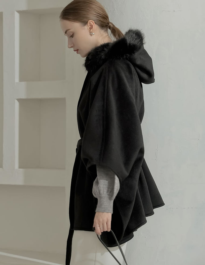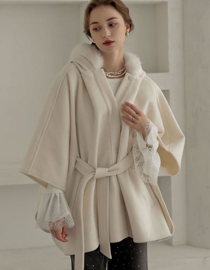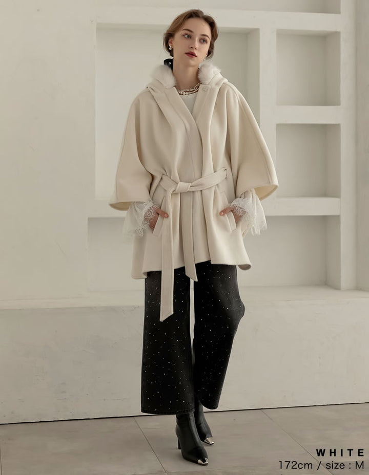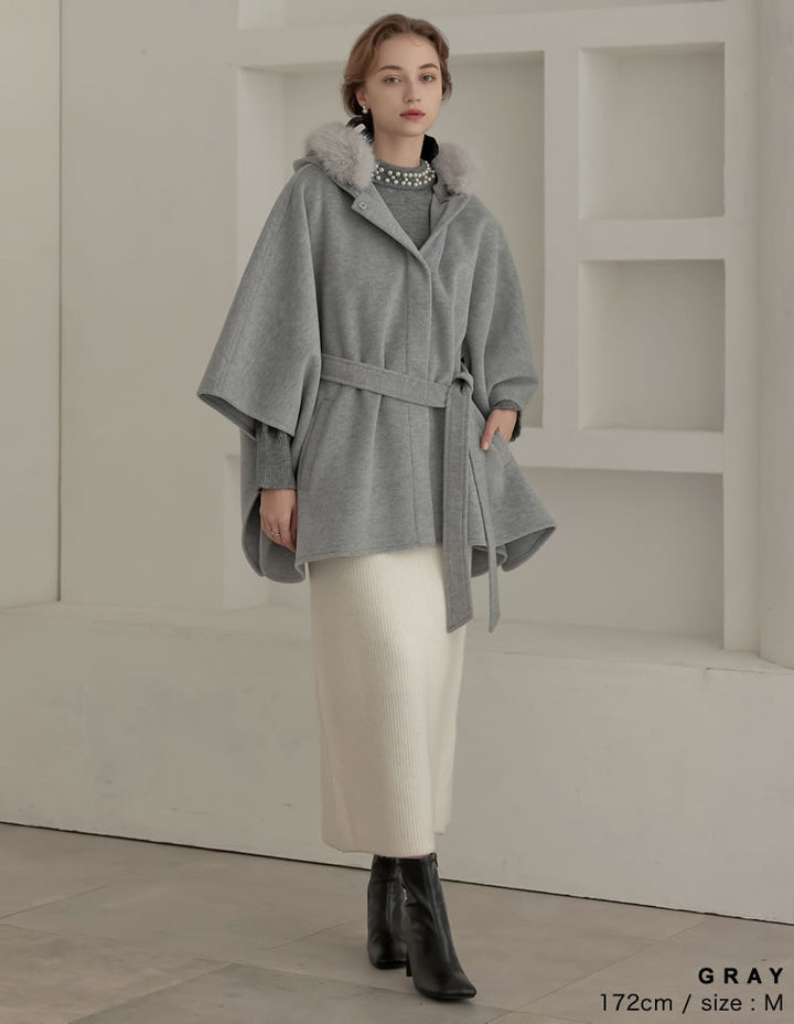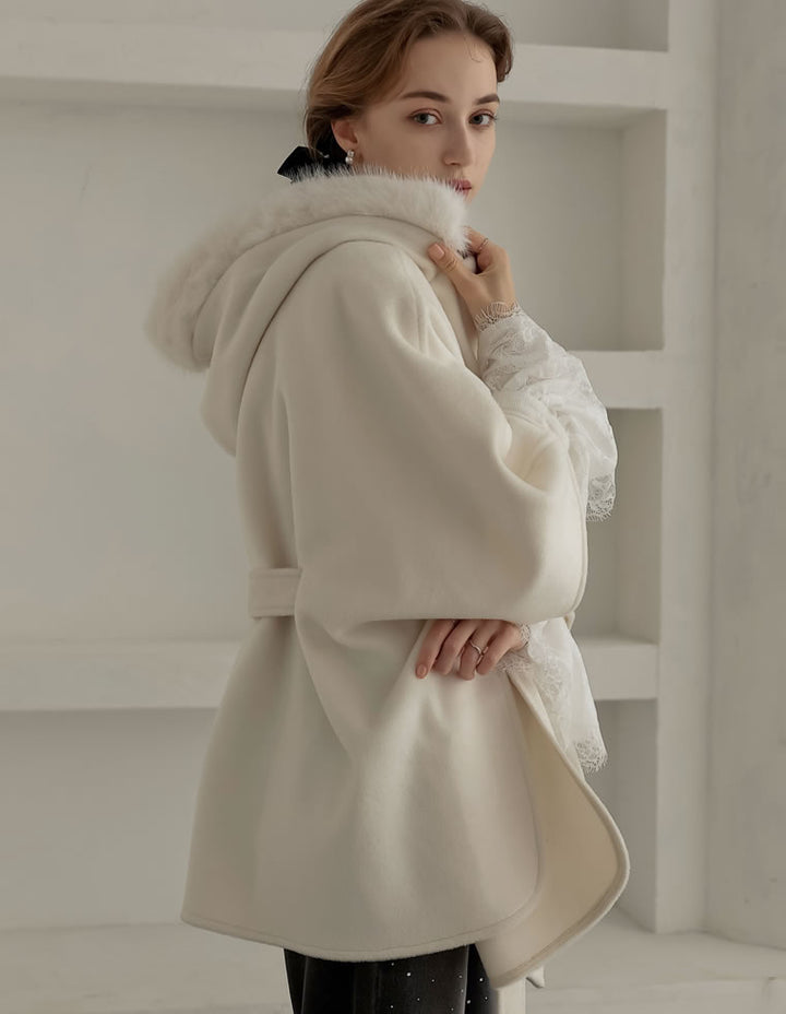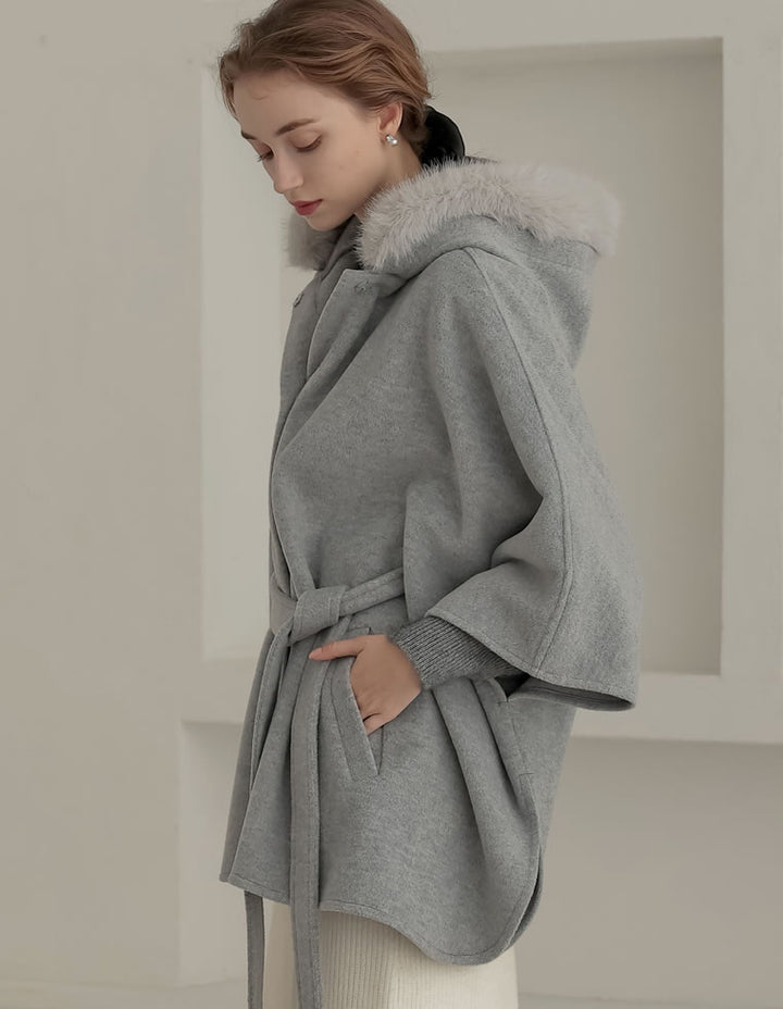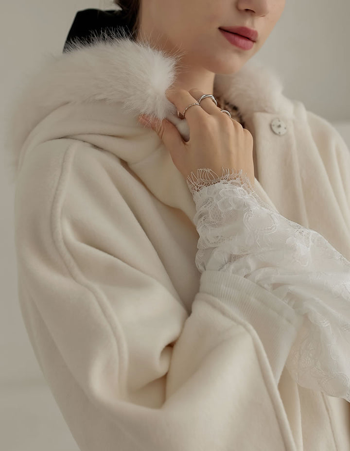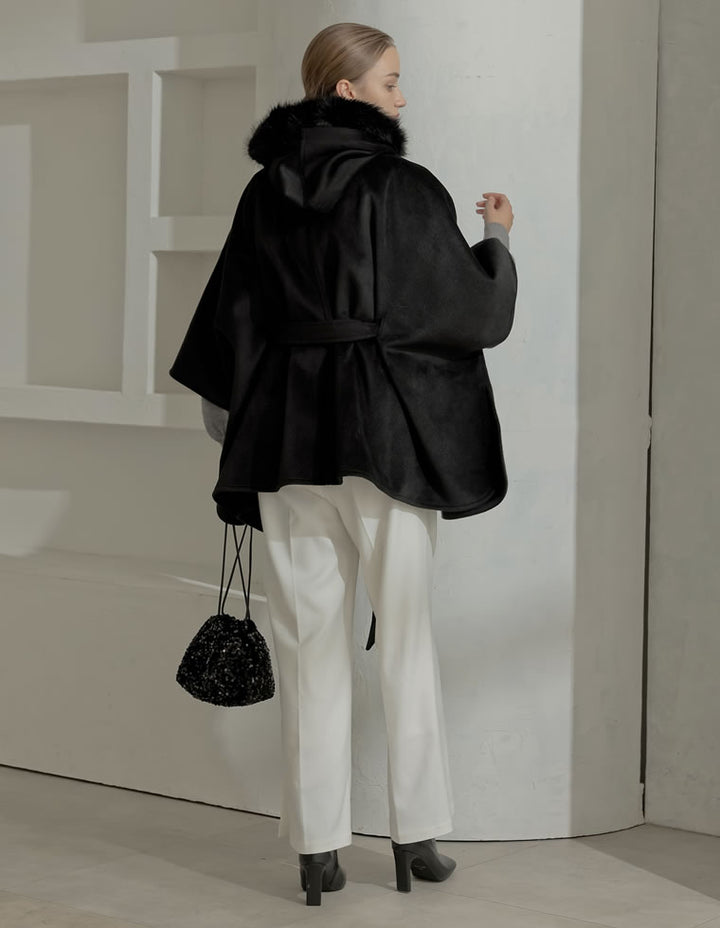 トレンドのフードデザインに、取り外し可能なフェイクファーをあしらい、華やかさをプラスしました。