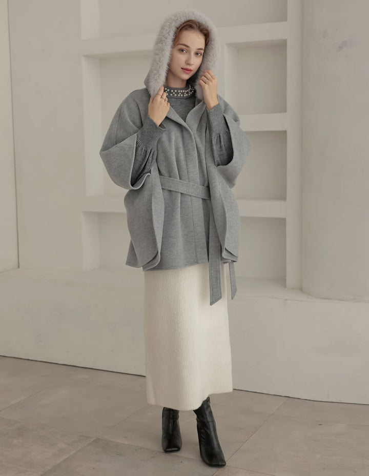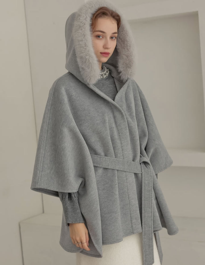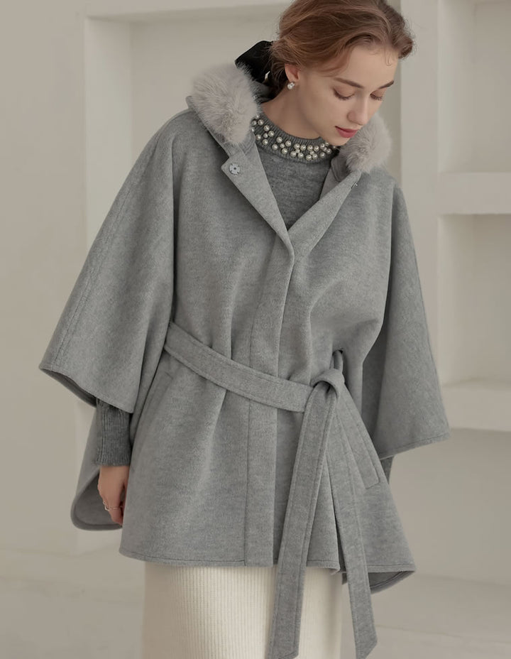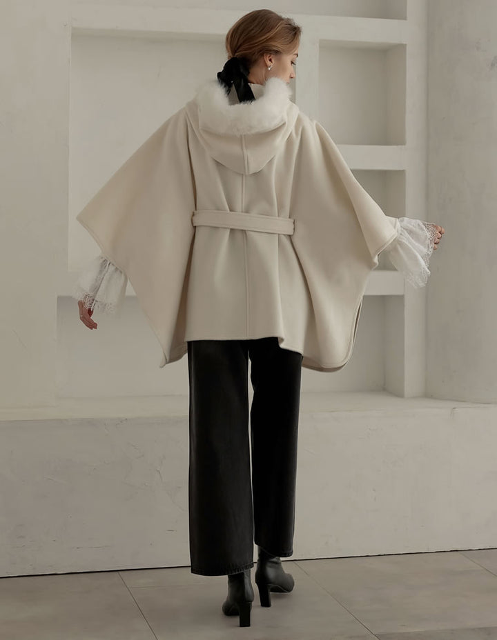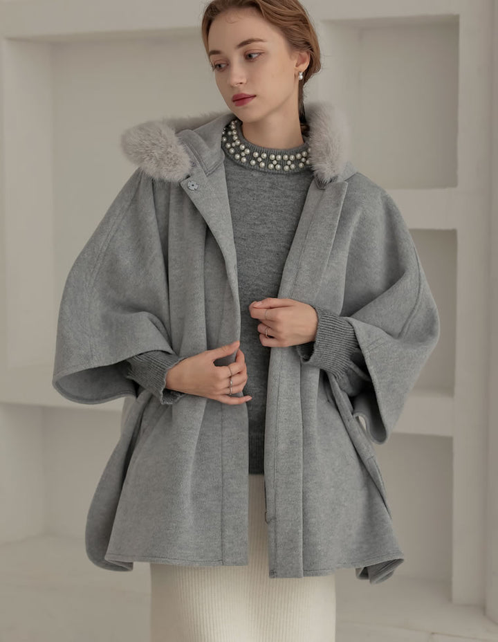 上質なリバー素材(Wフェイス)で仕立てた、軽やかで存在感のあるポンチョコート。