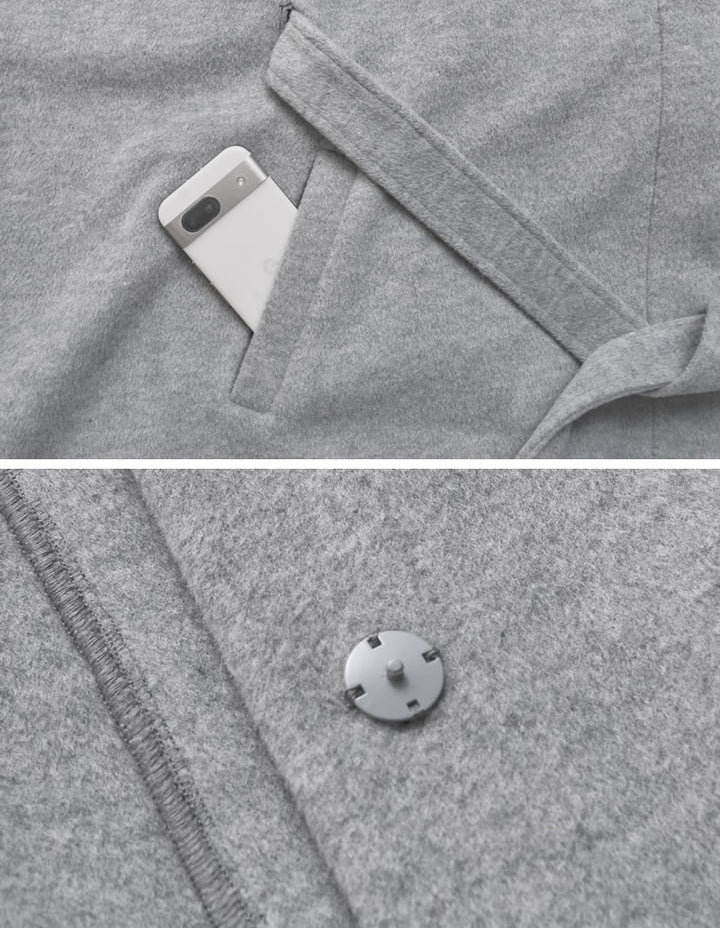 前開きはスナップボタン仕様で、さっと着脱しやすいのも◎