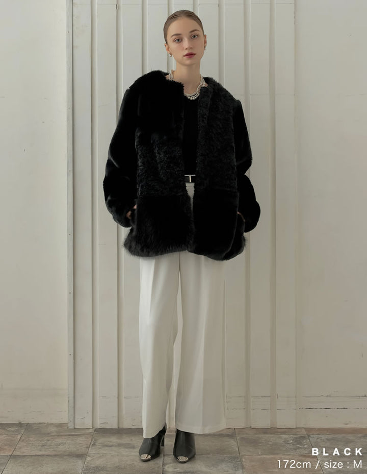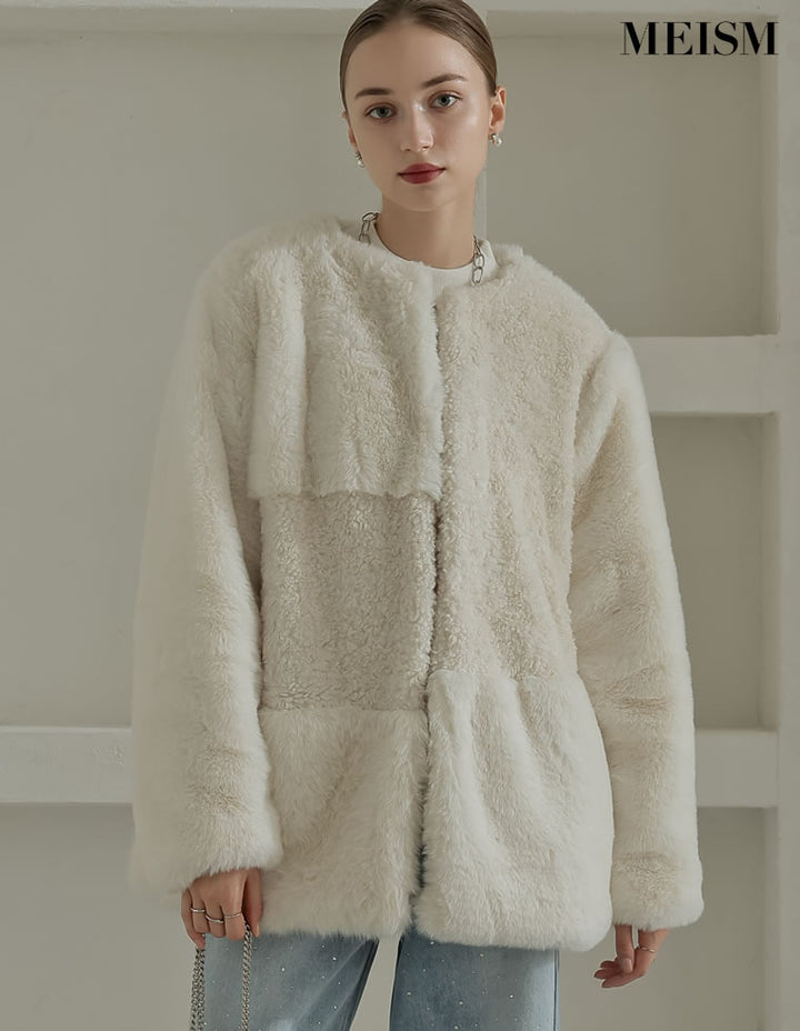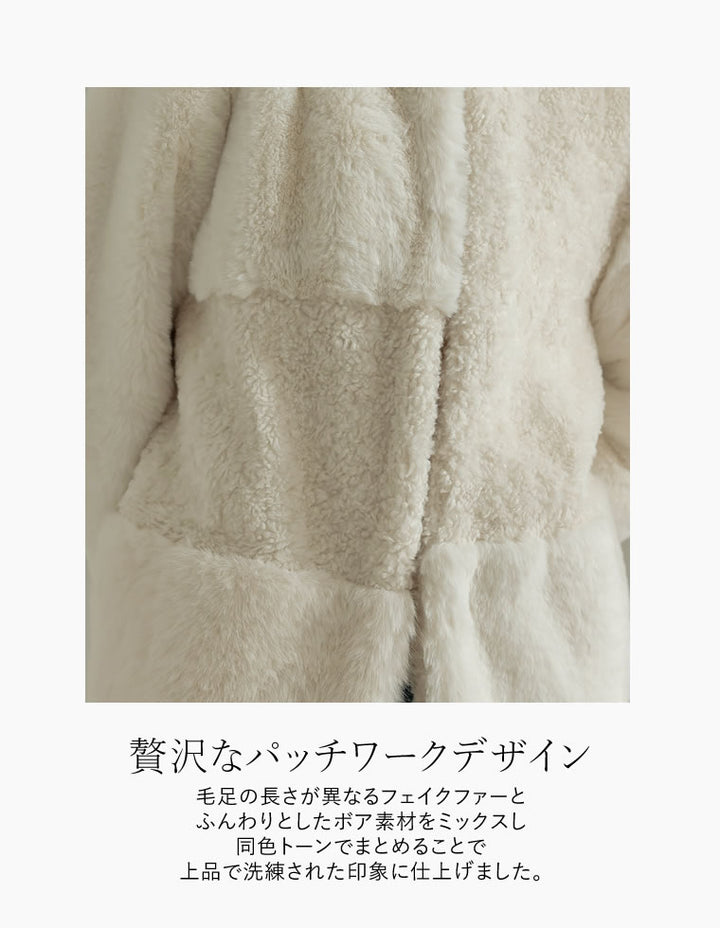 [2025-26 WINTER COLLECTION][MEISM by Re:EDIT]パッチワークボアファーノーカラーミドルコート