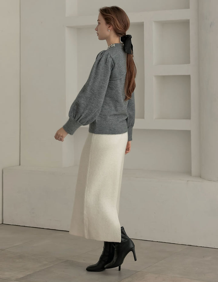 [2025-26 WINTER COLLECTION][MEISM by Re:EDIT]パールハイネックボリュームスリーブバックシャンニット