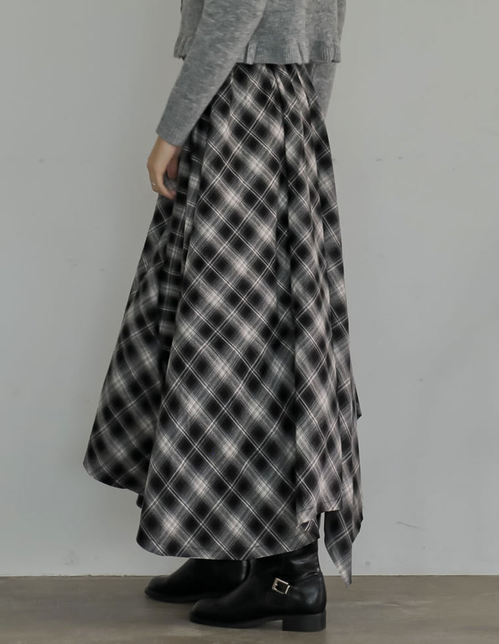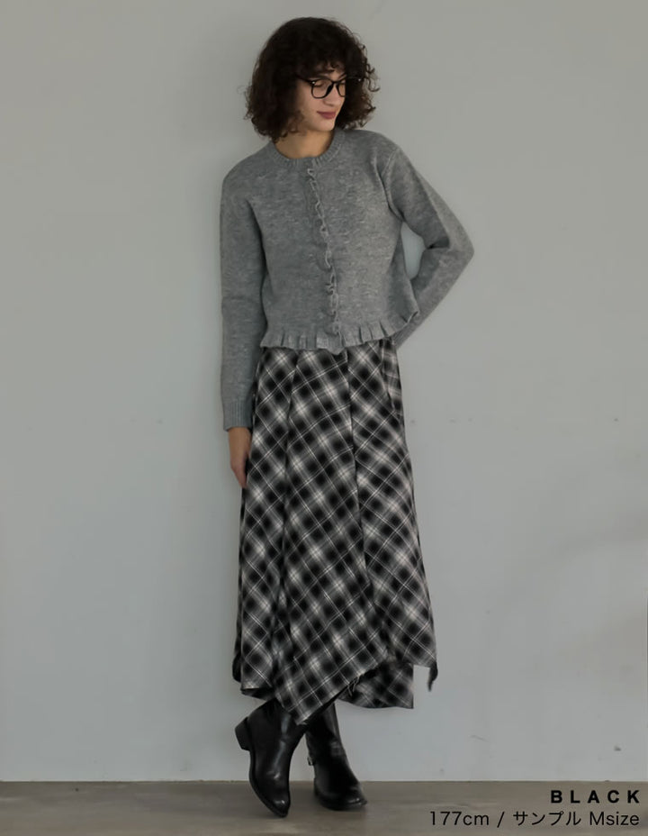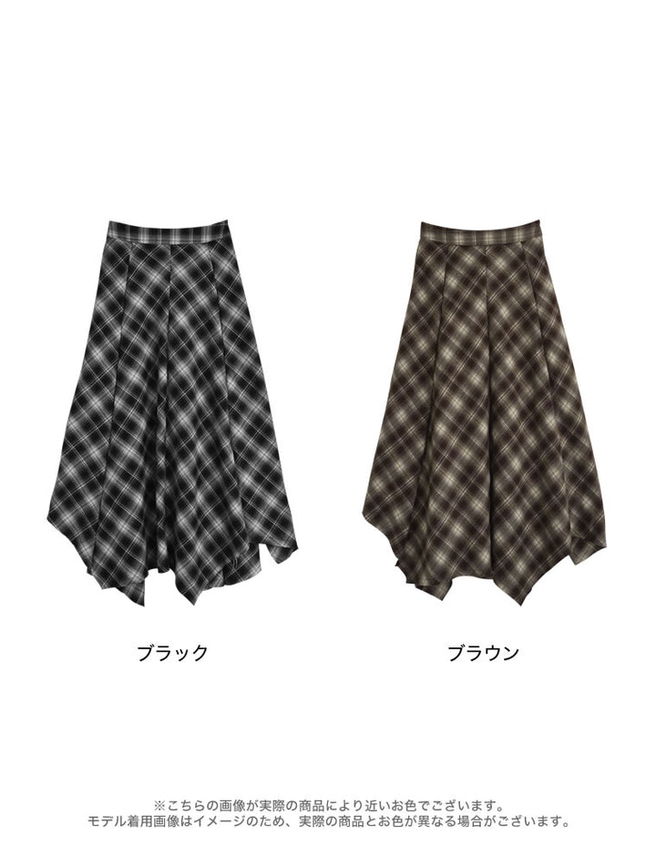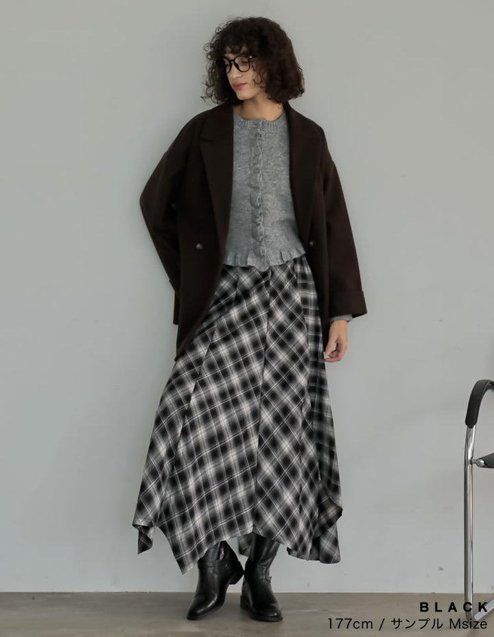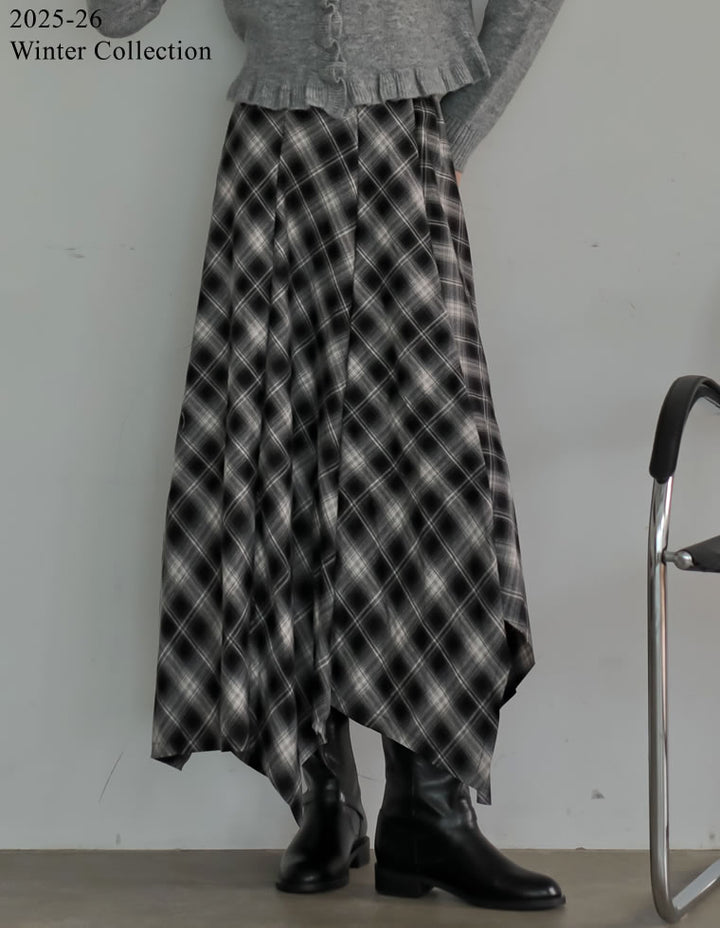 [2025 WINTER PRE ORDER]起毛チェック柄アシンメトリースカート