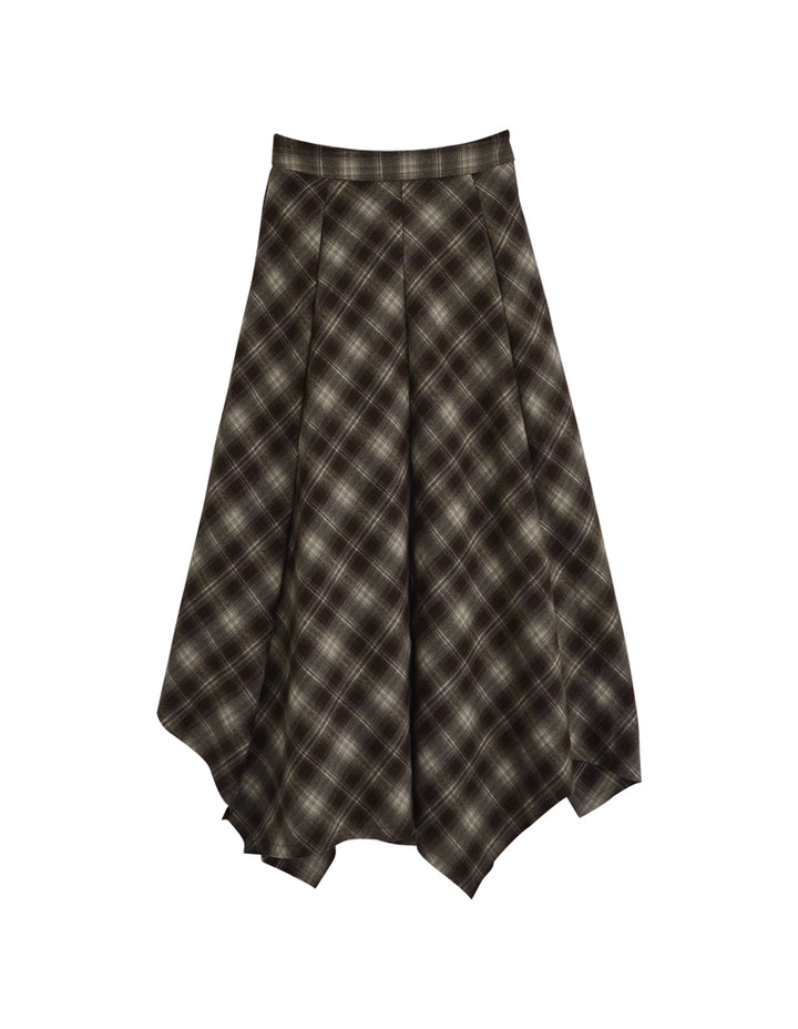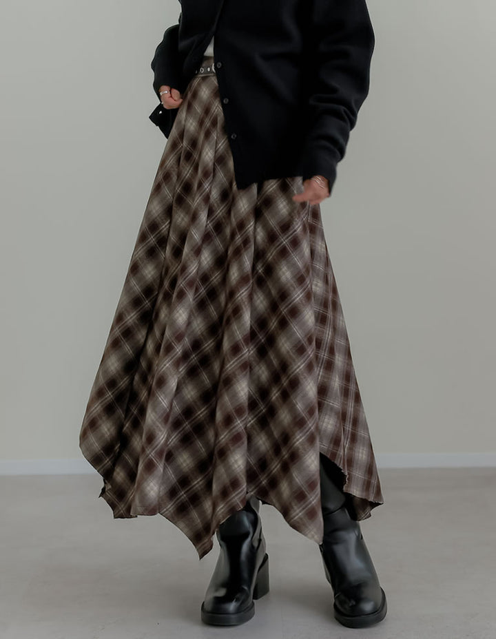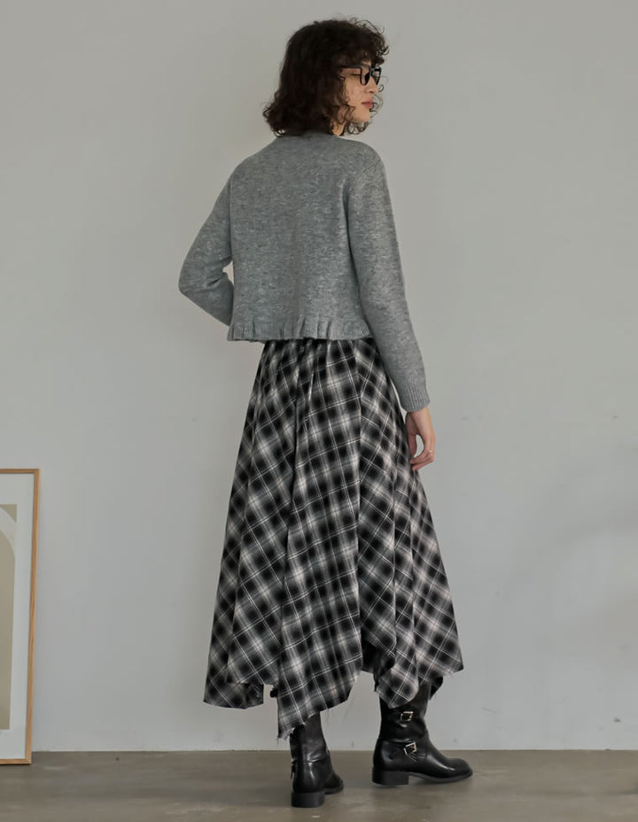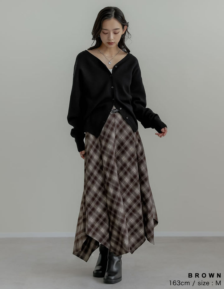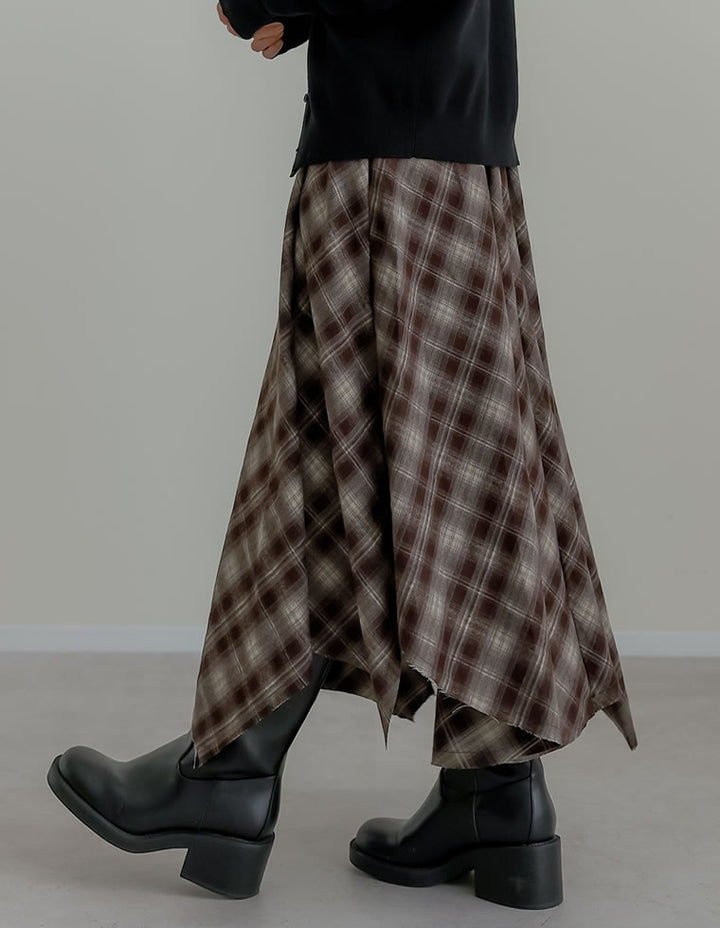 [2025 WINTER PRE ORDER]起毛チェック柄アシンメトリースカート