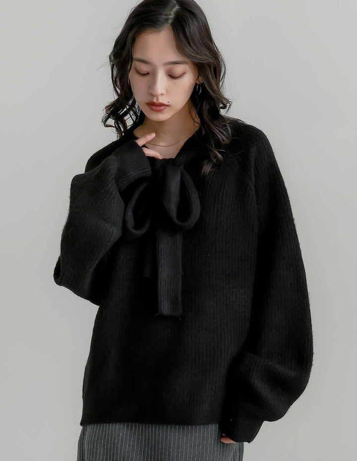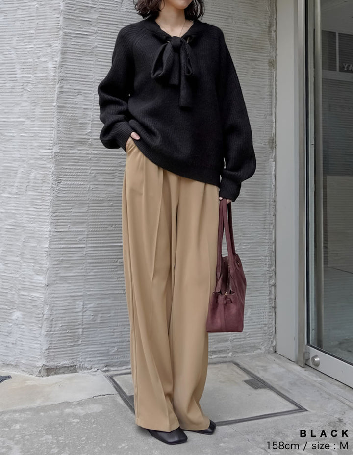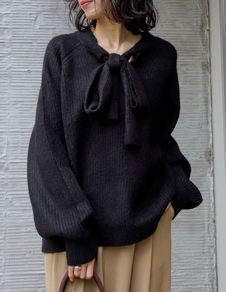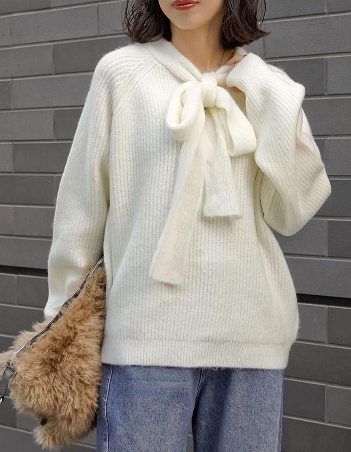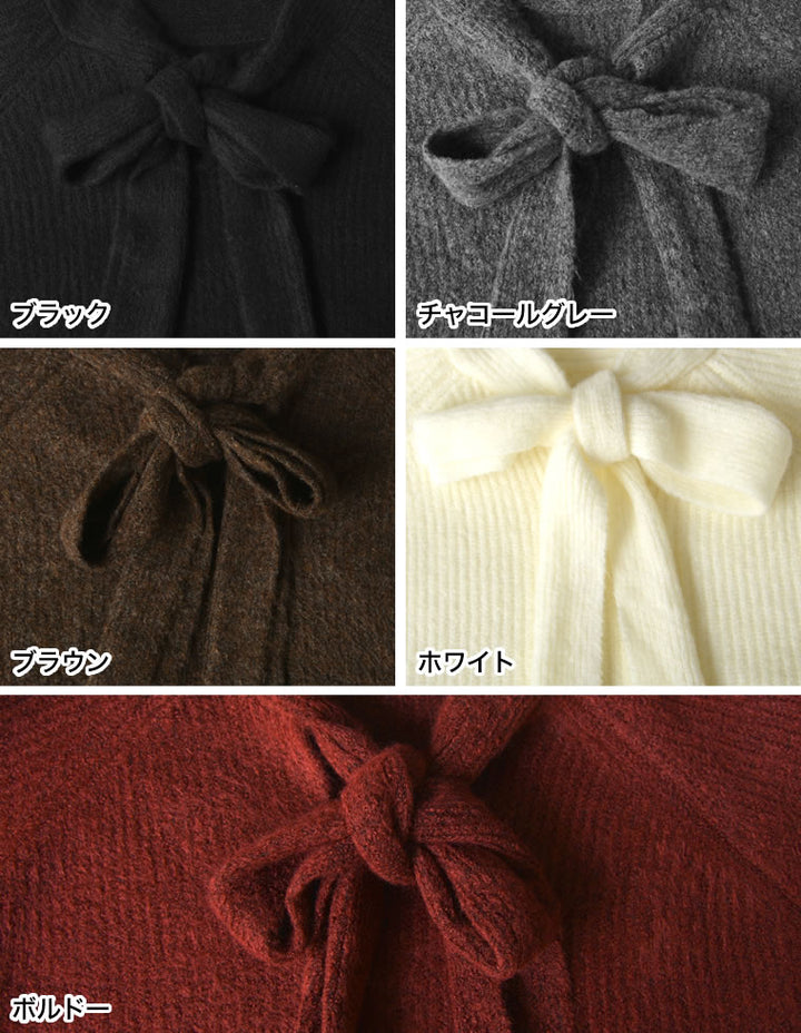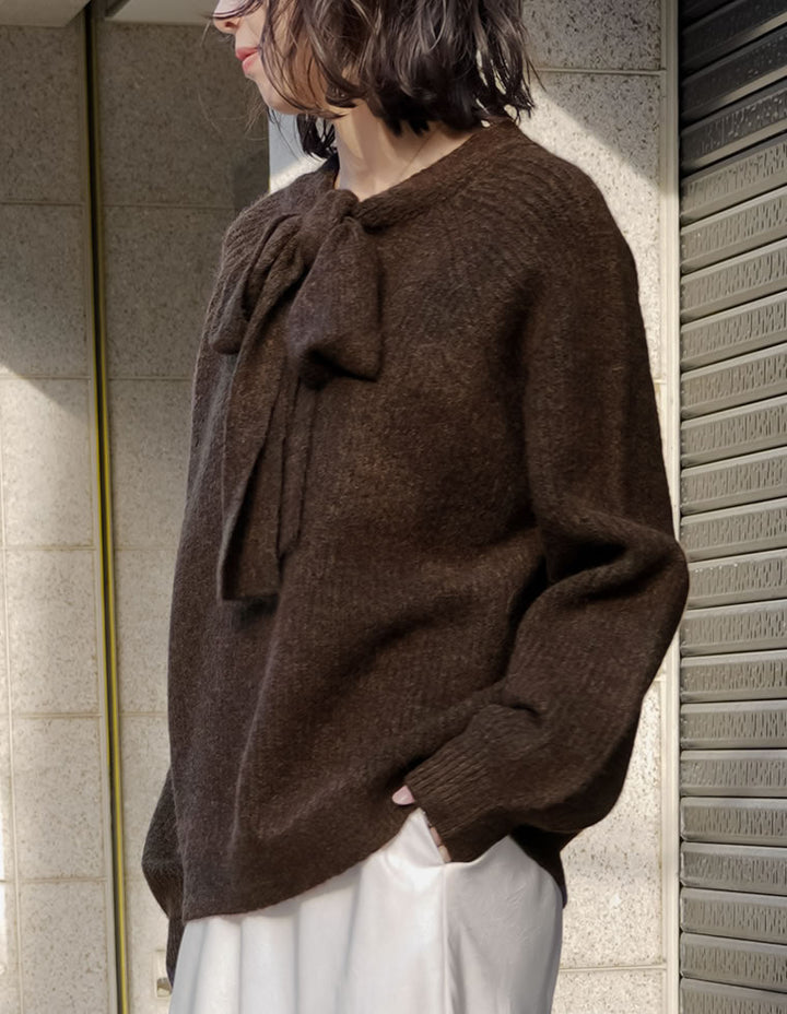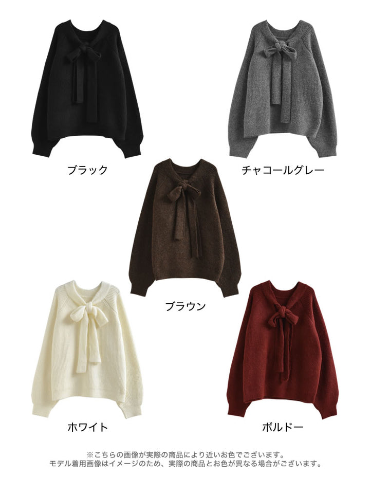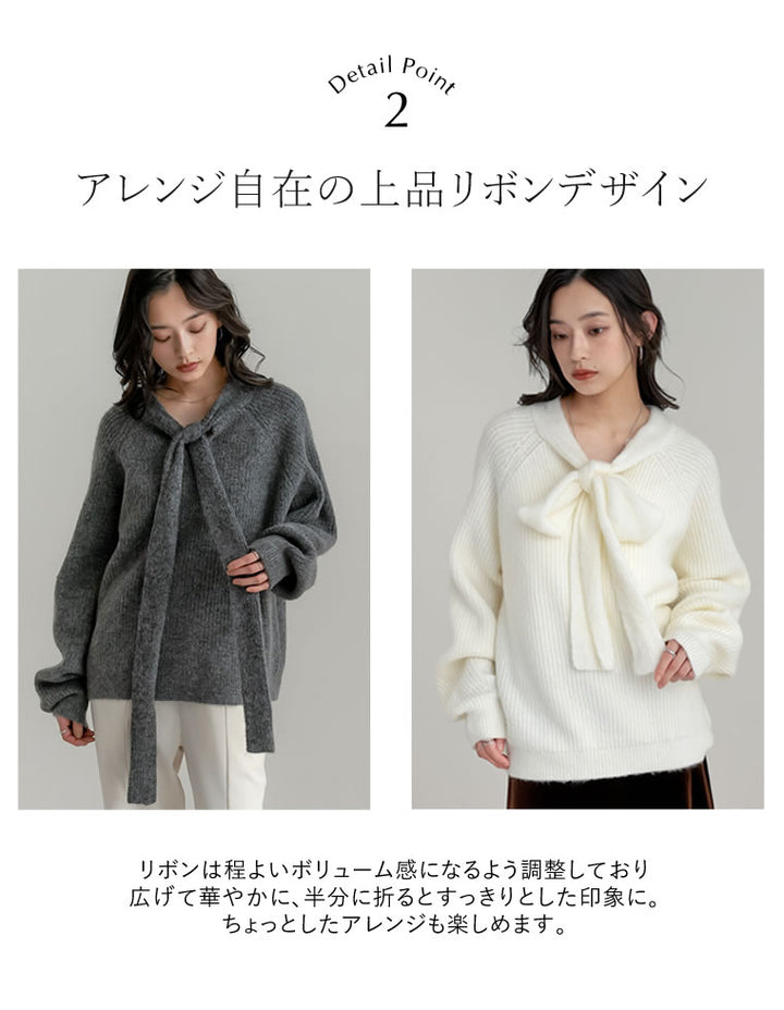 片畔ニットネックリボントップス