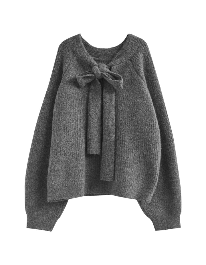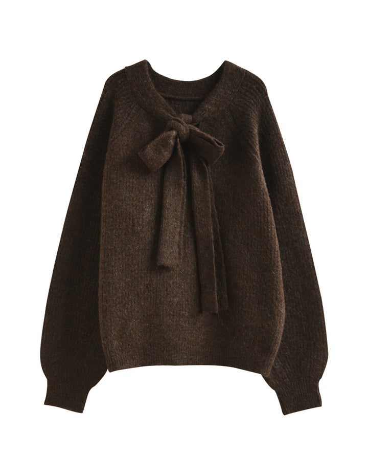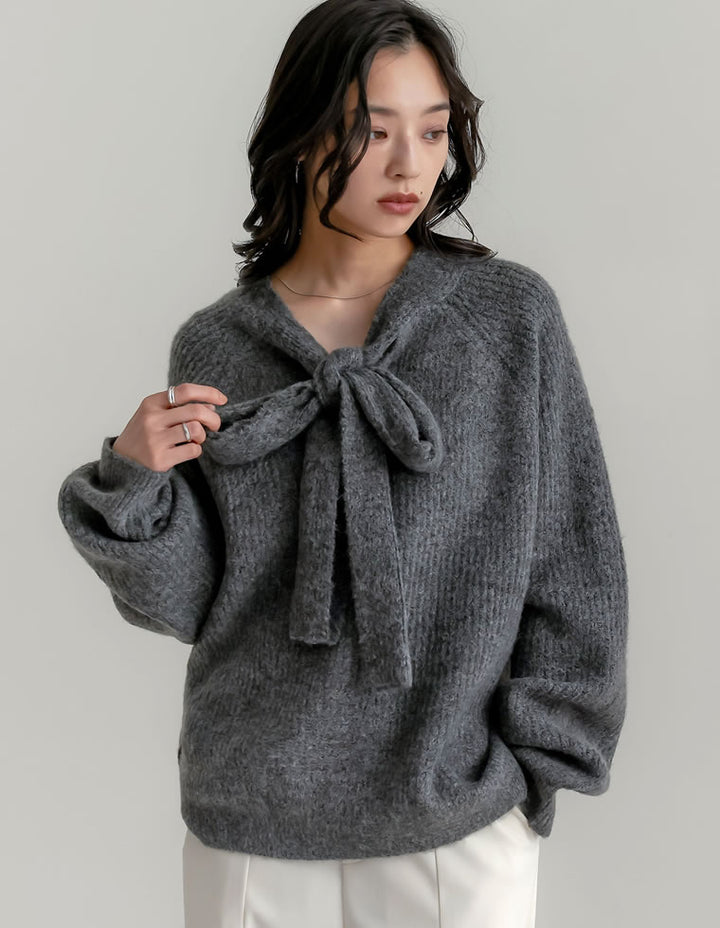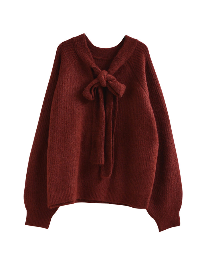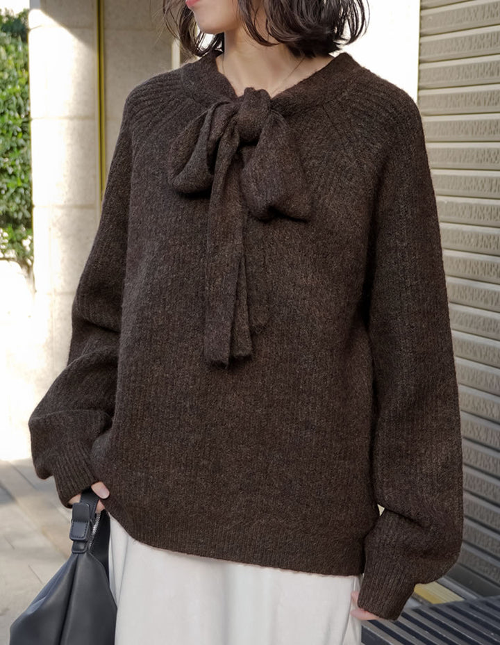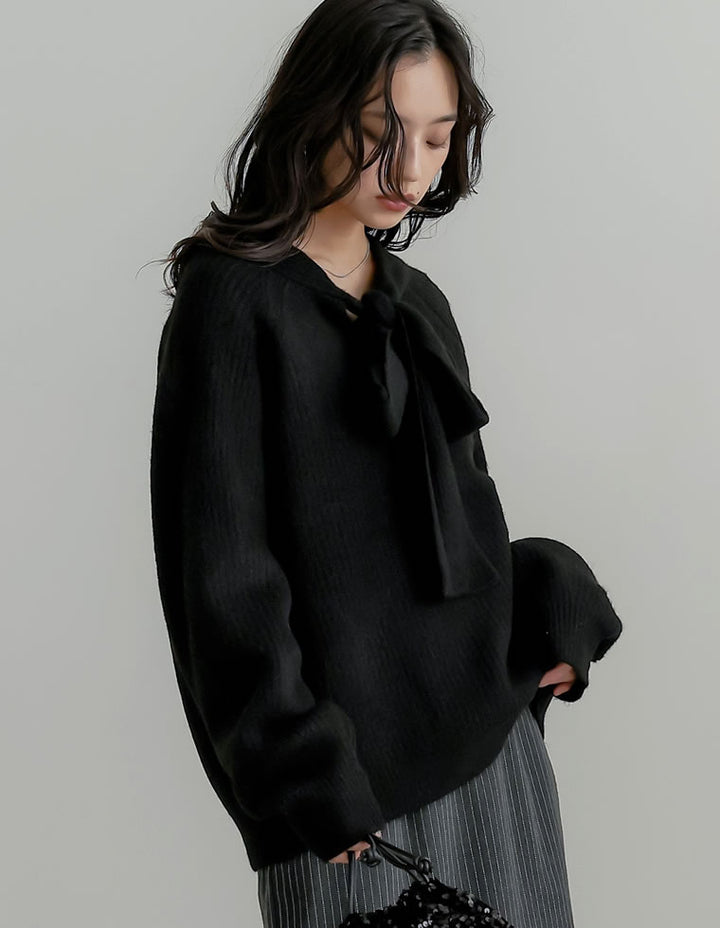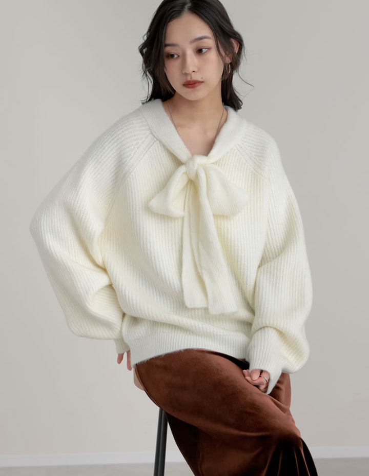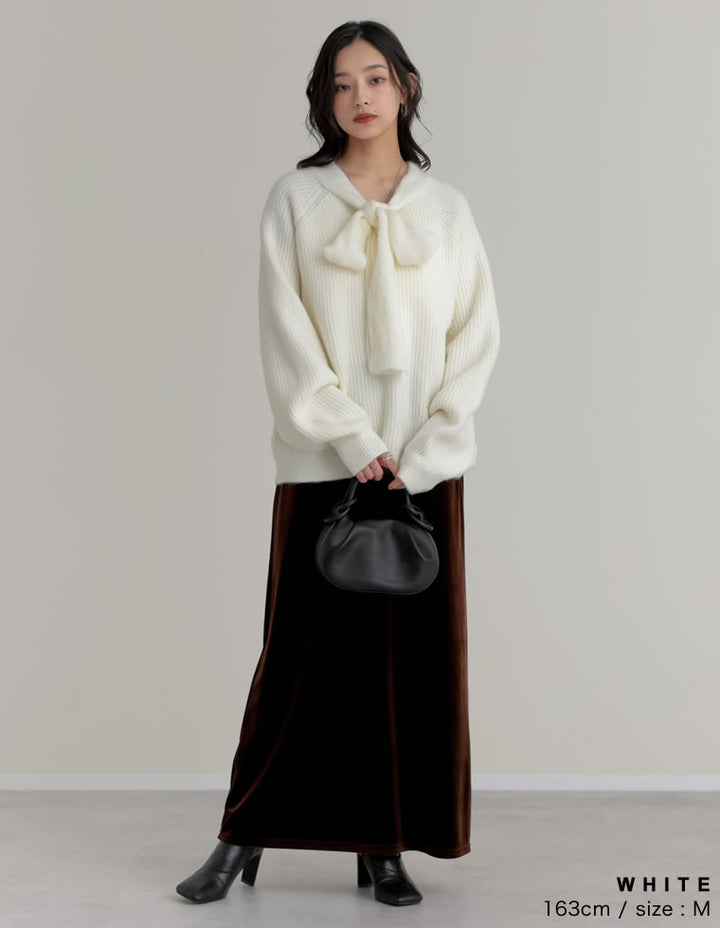 片畔ニットネックリボントップス