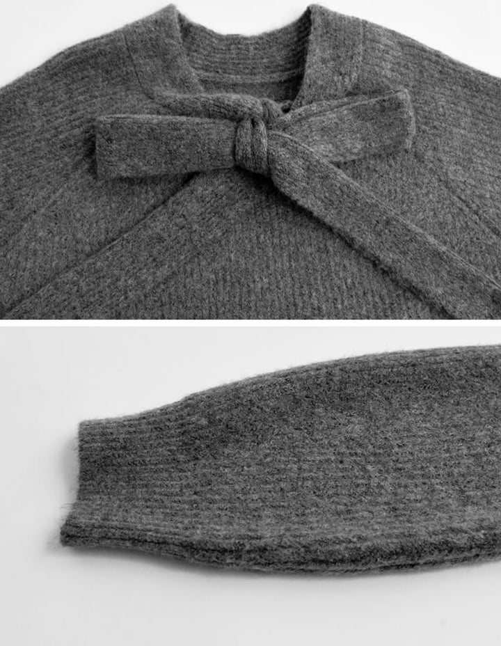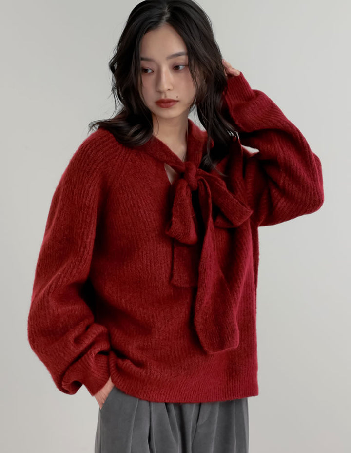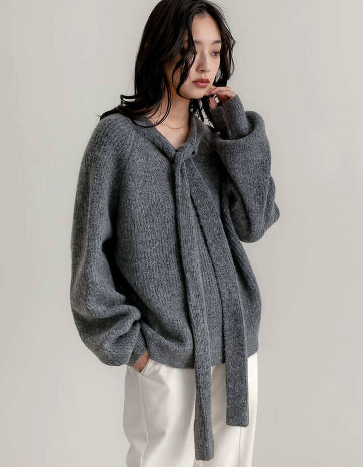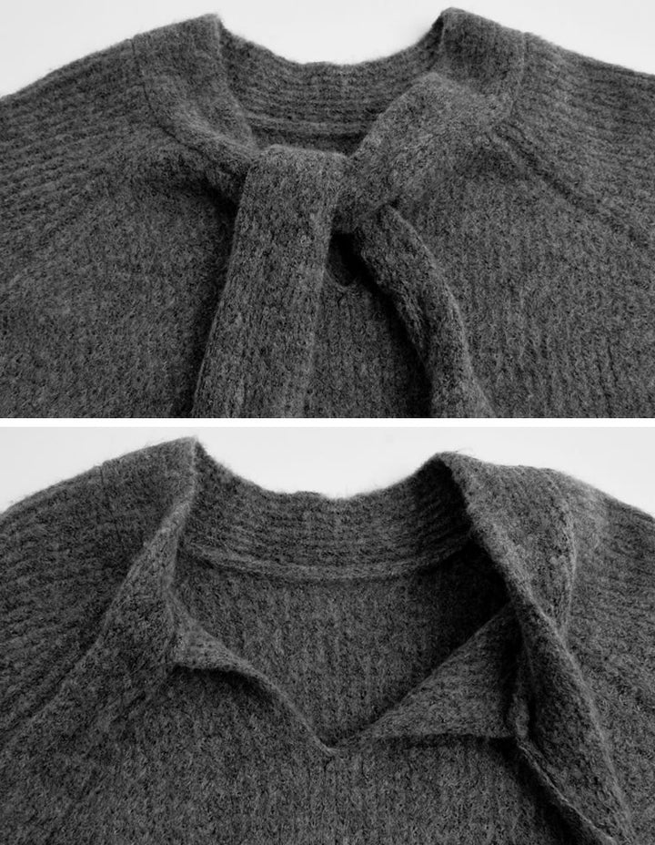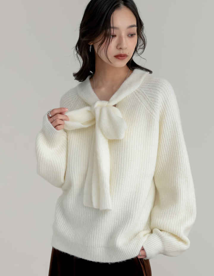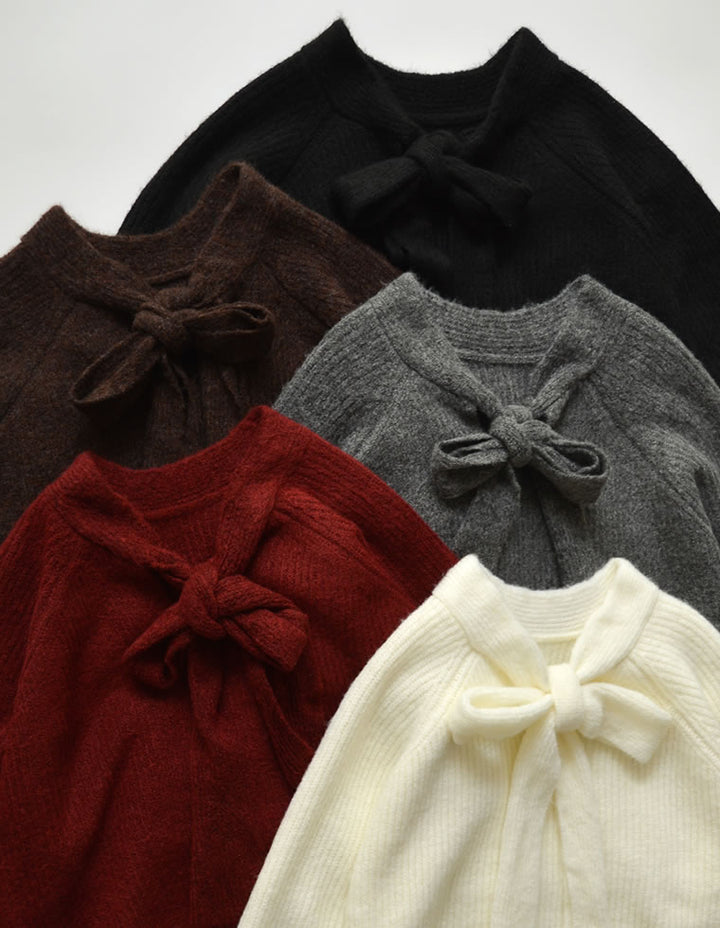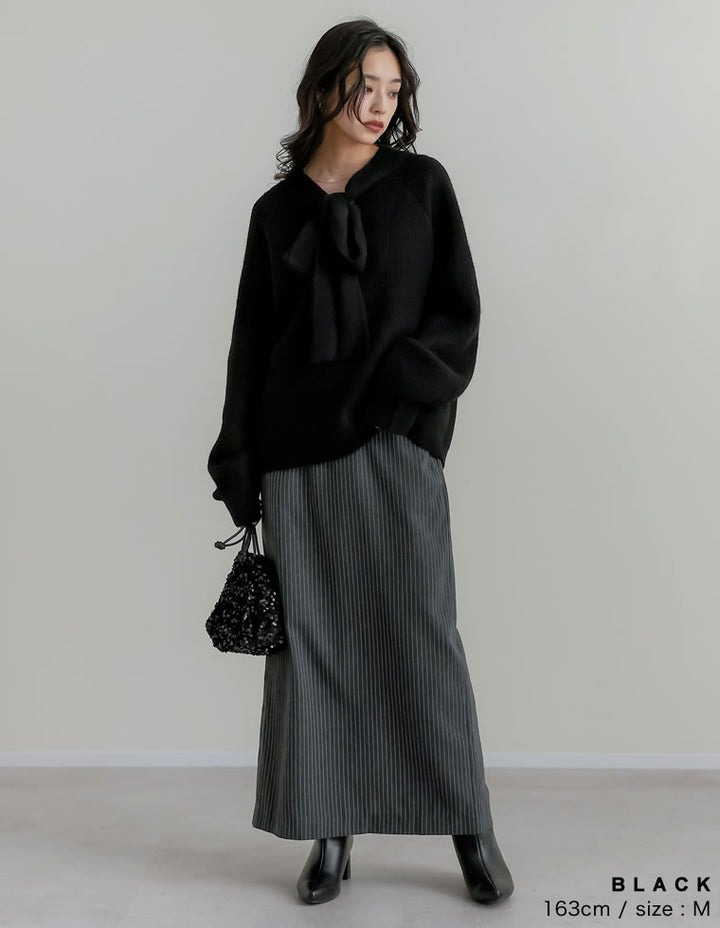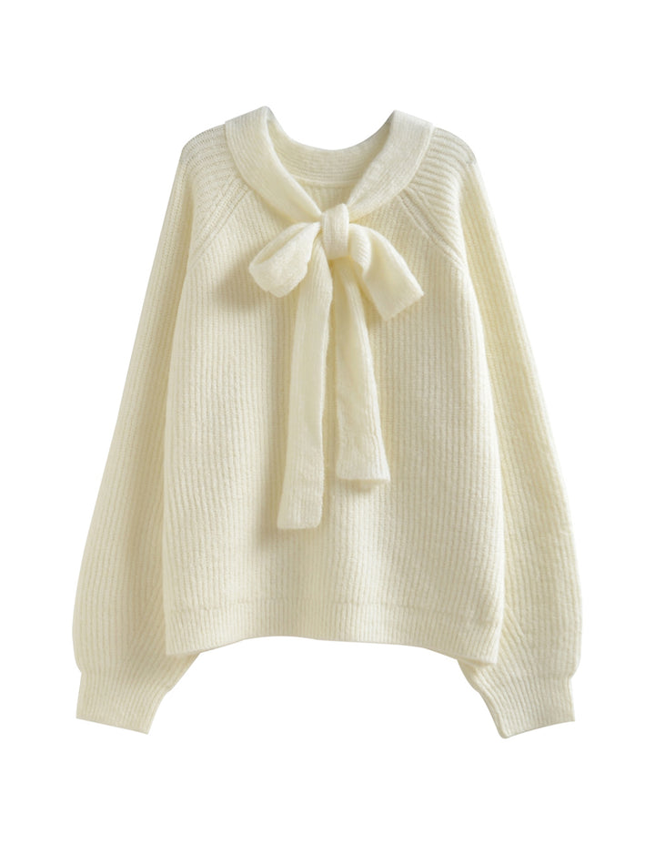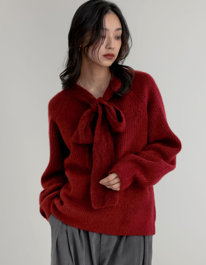片畔ニットネックリボントップス
