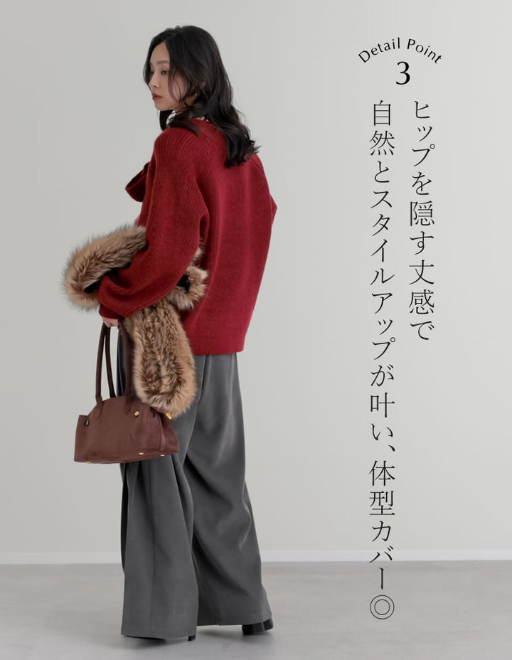 すっきりとした細身のパンツにはもちろん、ワイドパンツやデニム、スカートなど様々なアイテムと好相性。