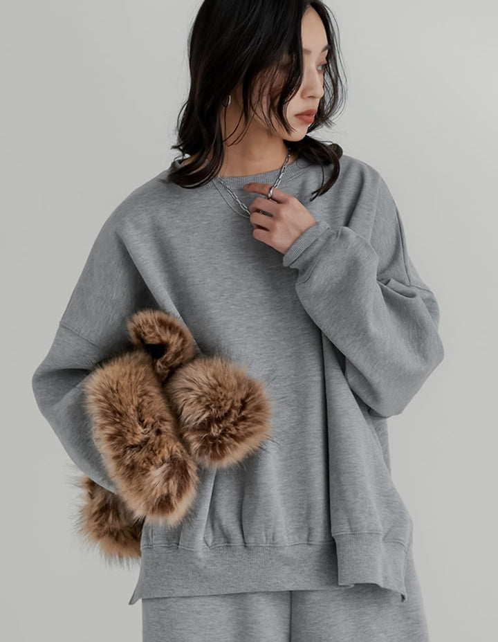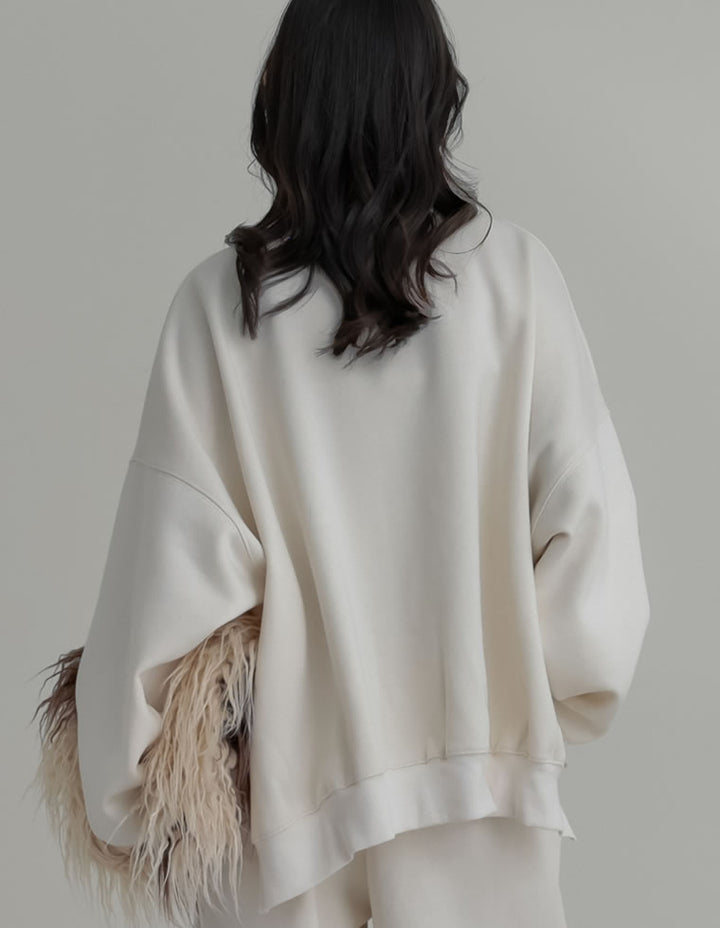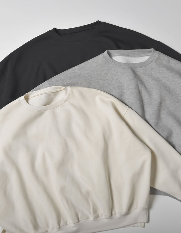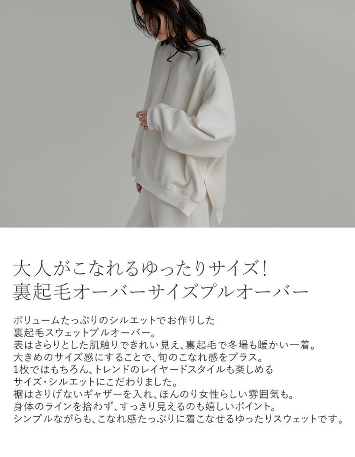 ボリュームたっぷりのシルエットでお作りした裏起毛スウェットプルオーバー。