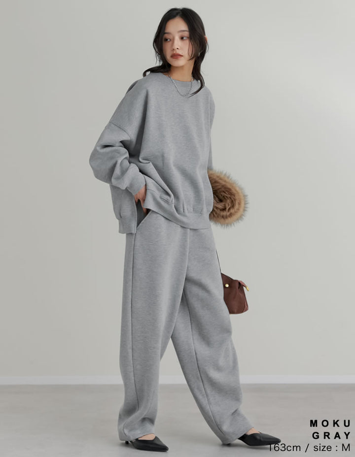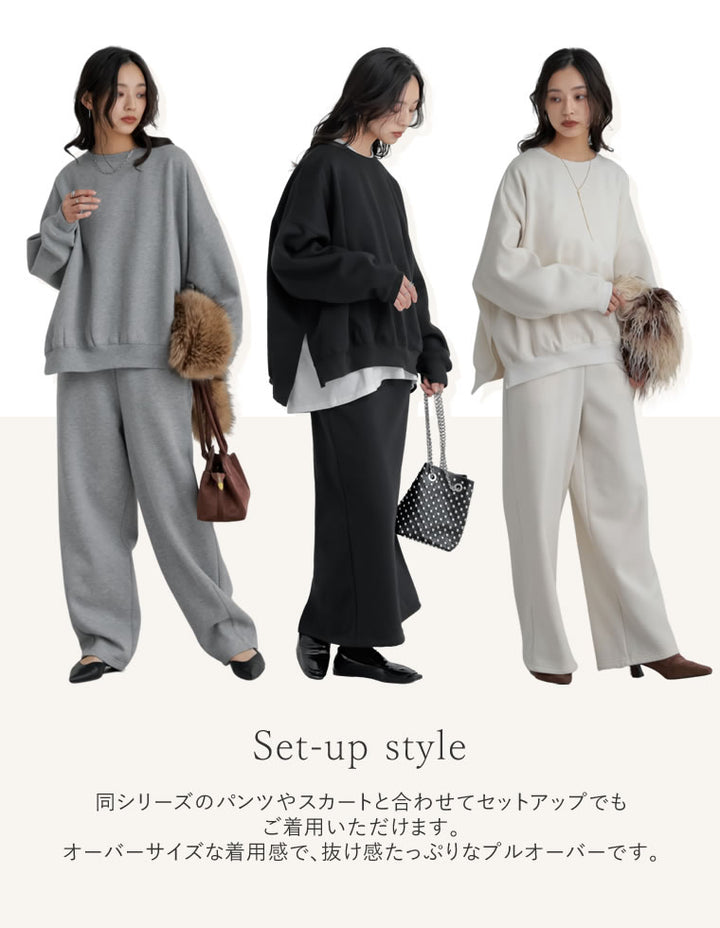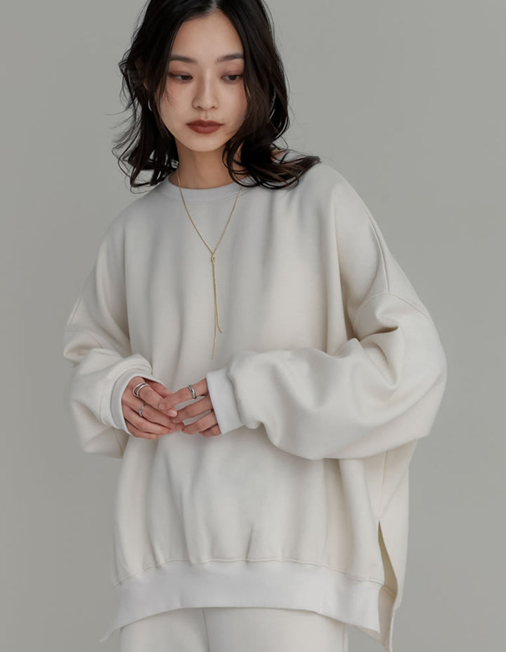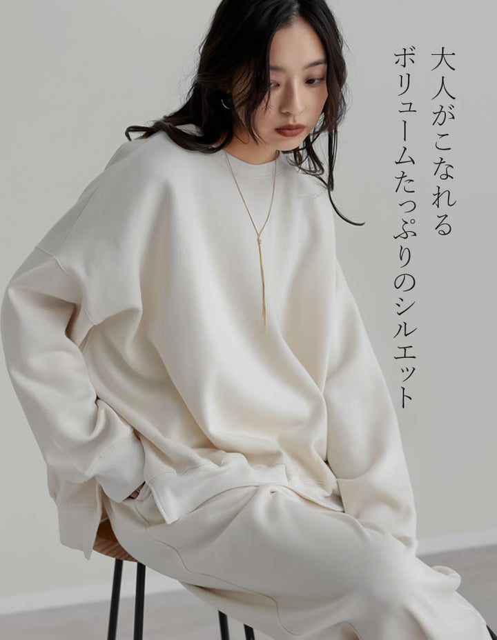 シンプルながらも、こなれ感たっぷりに着こなせるゆったりスウェットです。