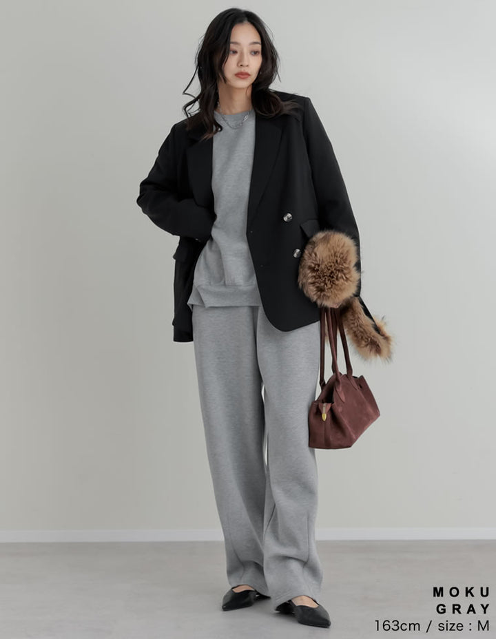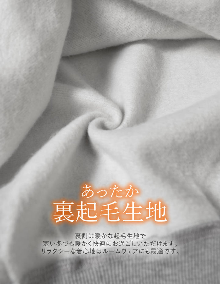 ※裏起毛素材は摩擦により、起毛処理過程で切れたり抜けた毛羽が付着する場合がございます。ご着用前に粘着クリーナーをかけていただいたり、粘着クリーナー後にお洗濯をいただくことで軽減されます。また単独でのお洗濯を推奨いたします。