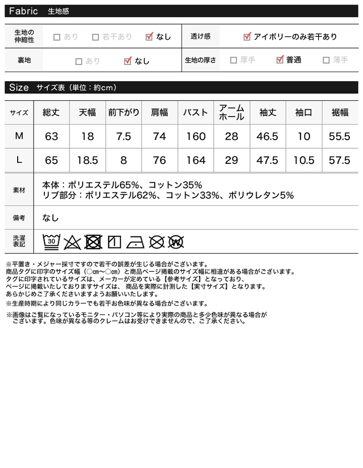 洗濯・アイロンをする際は、商品タグの品質表示をご確認ください。