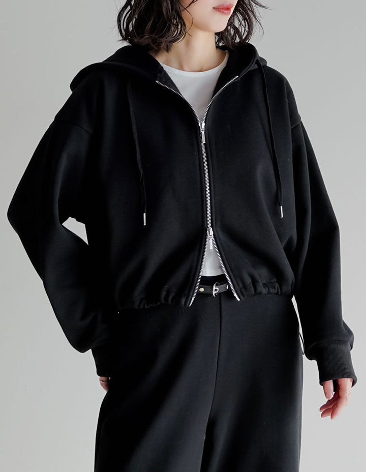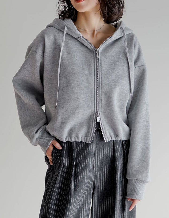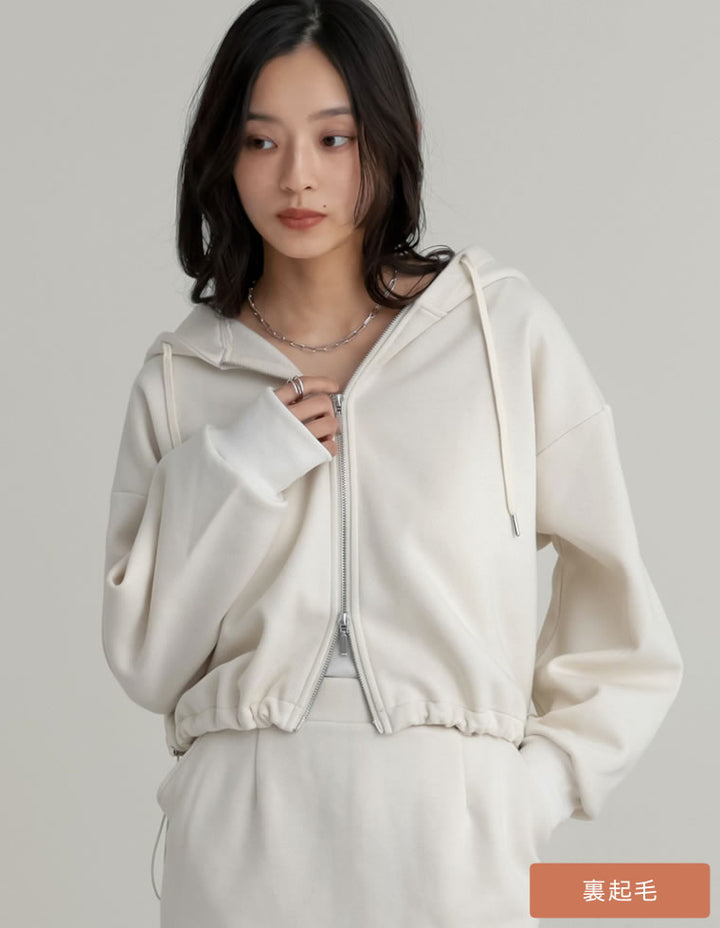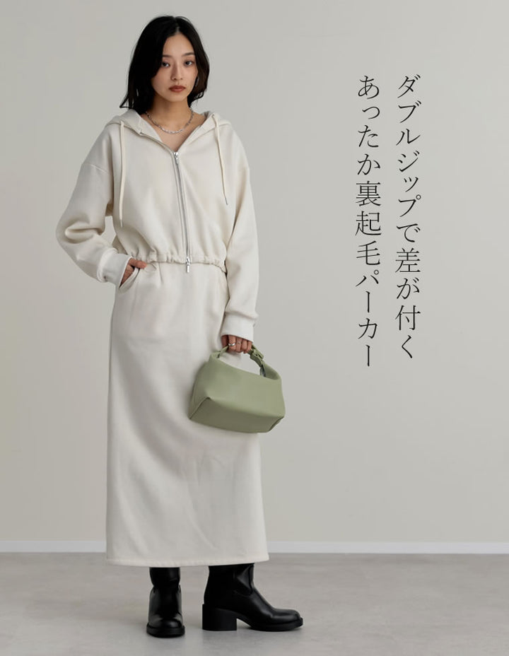 トレンドのダブルZIPデザインにこだわった裏起毛パーカー。表はさらりとした肌触りできれい見えし、裏起毛で冬場も暖かい一着です。カジュアルになりがちなパーカーですが、短すぎず長すぎない丈感や、抜け感のあるシルエットにこだわりました。ジップの開閉具合や裾のドロストの調節で、自分好みのシルエットに。大きめのフードは自然と顔周りをすっきり見せ、小顔効果も◎大人のリラックスカジュアルに、こなれ感をプラスできるトップスです。