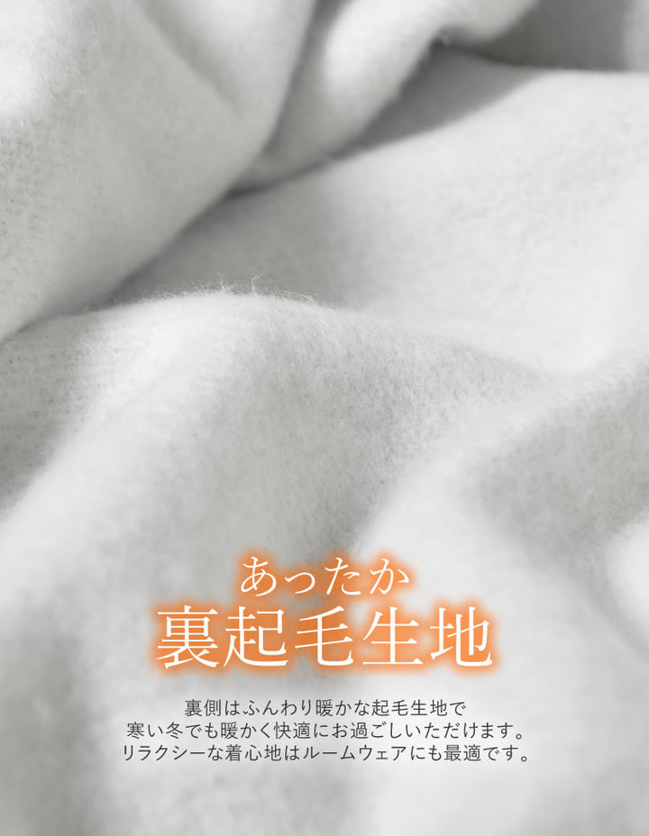 ※裏起毛素材は摩擦により、起毛処理過程で切れたり抜けた毛羽が付着する場合がございます。ご着用前に粘着クリーナーをかけていただいたり、粘着クリーナー後にお洗濯をいただくことで軽減されます。また単独でのお洗濯を推奨いたします。