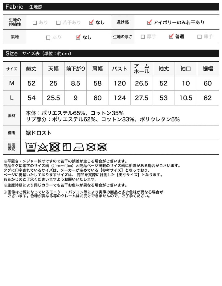洗濯・アイロンをする際は、商品タグの品質表示をご確認ください。
