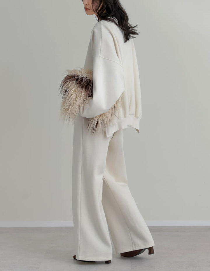 ※裏起毛素材は摩擦により、起毛処理過程で切れたり抜けた毛羽が付着する場合がございます。ご着用前に粘着クリーナーをかけていただいたり、粘着クリーナー後にお洗濯をいただくことで軽減されます。また単独でのお洗濯を推奨いたします。