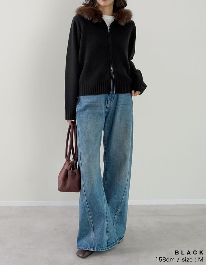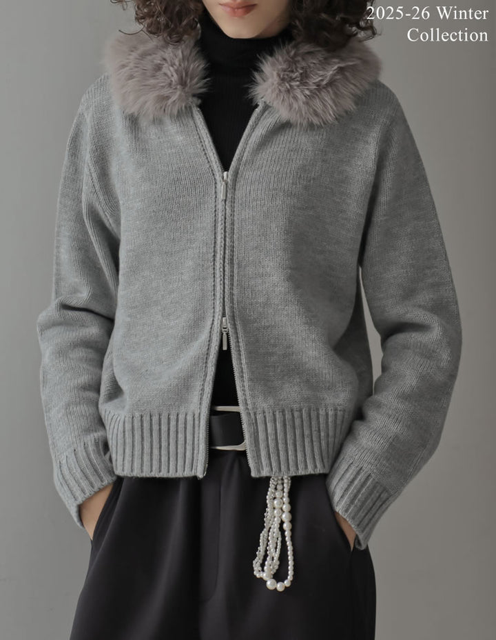 【PRE ORDER 20%OFF対象】[2025 WINTER PRE ORDER]ファーフードジップニットカーディガン